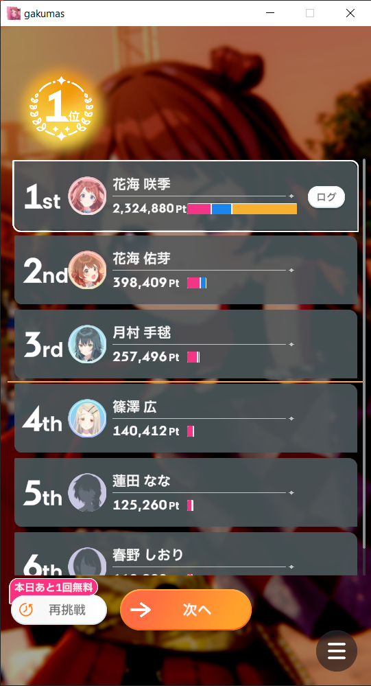 >>561625378fucking hate this currently running eventthe P-item offerings determine whether I'd be going for hirogaru or luv bomb, and yet when I get either of them I am not getting the corresponding card