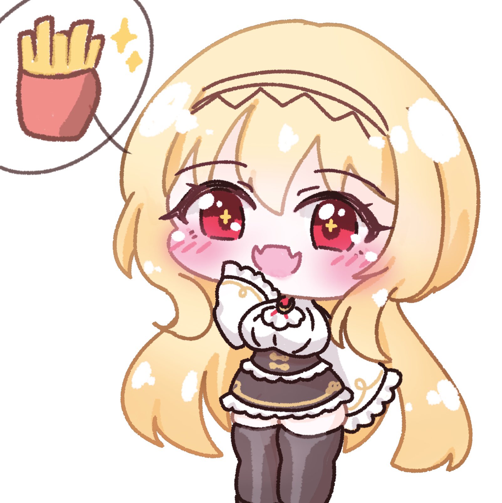 The fabric of Ume's outfit makes her look so big.