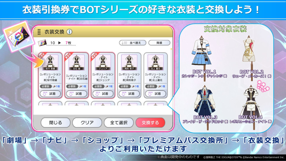 New BOT VOL.4 Premium Pass in April.Exchange outfit for BOT VOL.4 pass tickets is the alt version of Revolution Night outfit.
