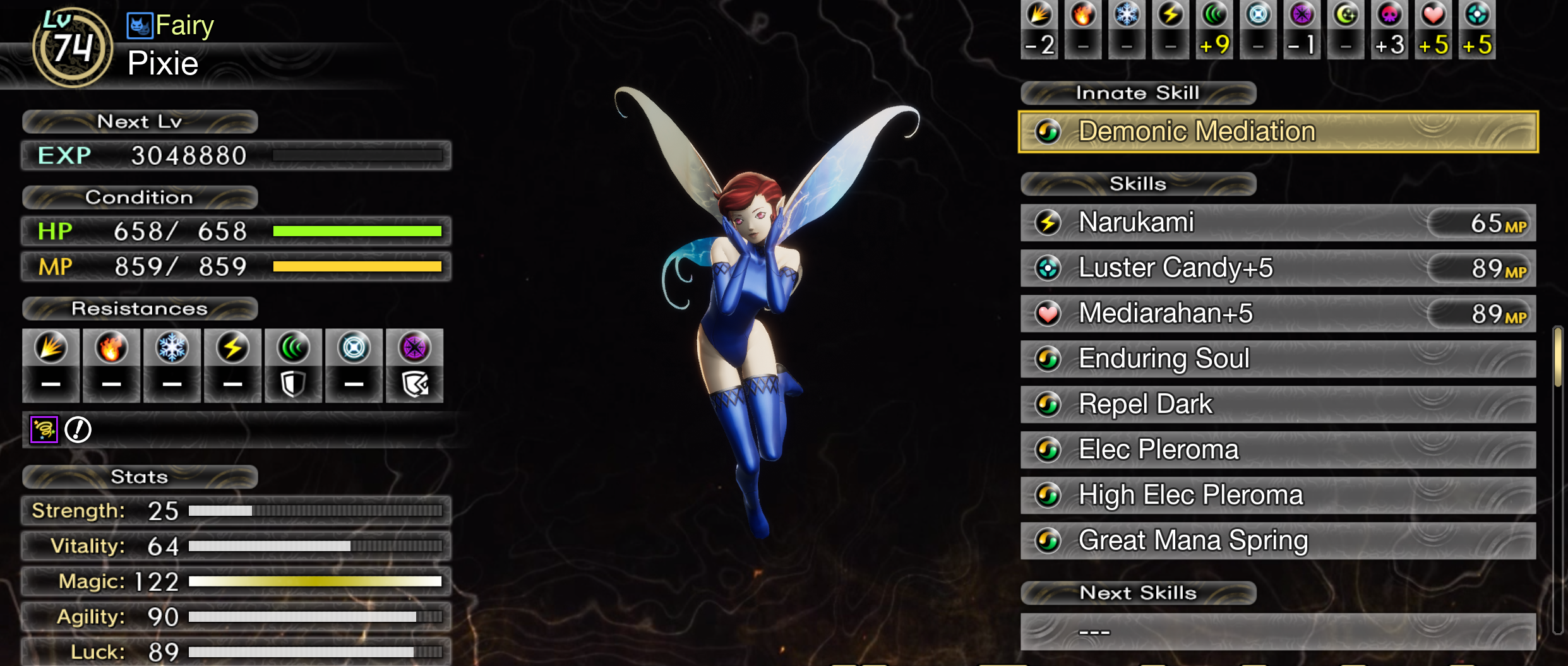 I beat VV with the demo exploit, it was cool, I still enjoy the combat, but I'm glad I didn't spend $50-80 on the game again. It was mostly the same game besides that one new area. Here's the Pixie I was able to take to endgame, she survived all of the endgame fights because the AI is dogshit and kept attacking her repel dark.