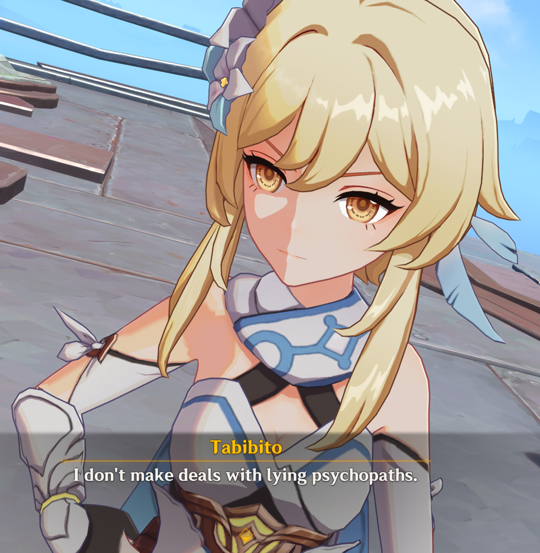 >Dottore could have done anything and was willing to do anything to convince traveler to join him>Traveler could have agreed on the condition he brought Bina back from gay baby jail, brought their twin to them and he agreed not to experiment or harm anymore people