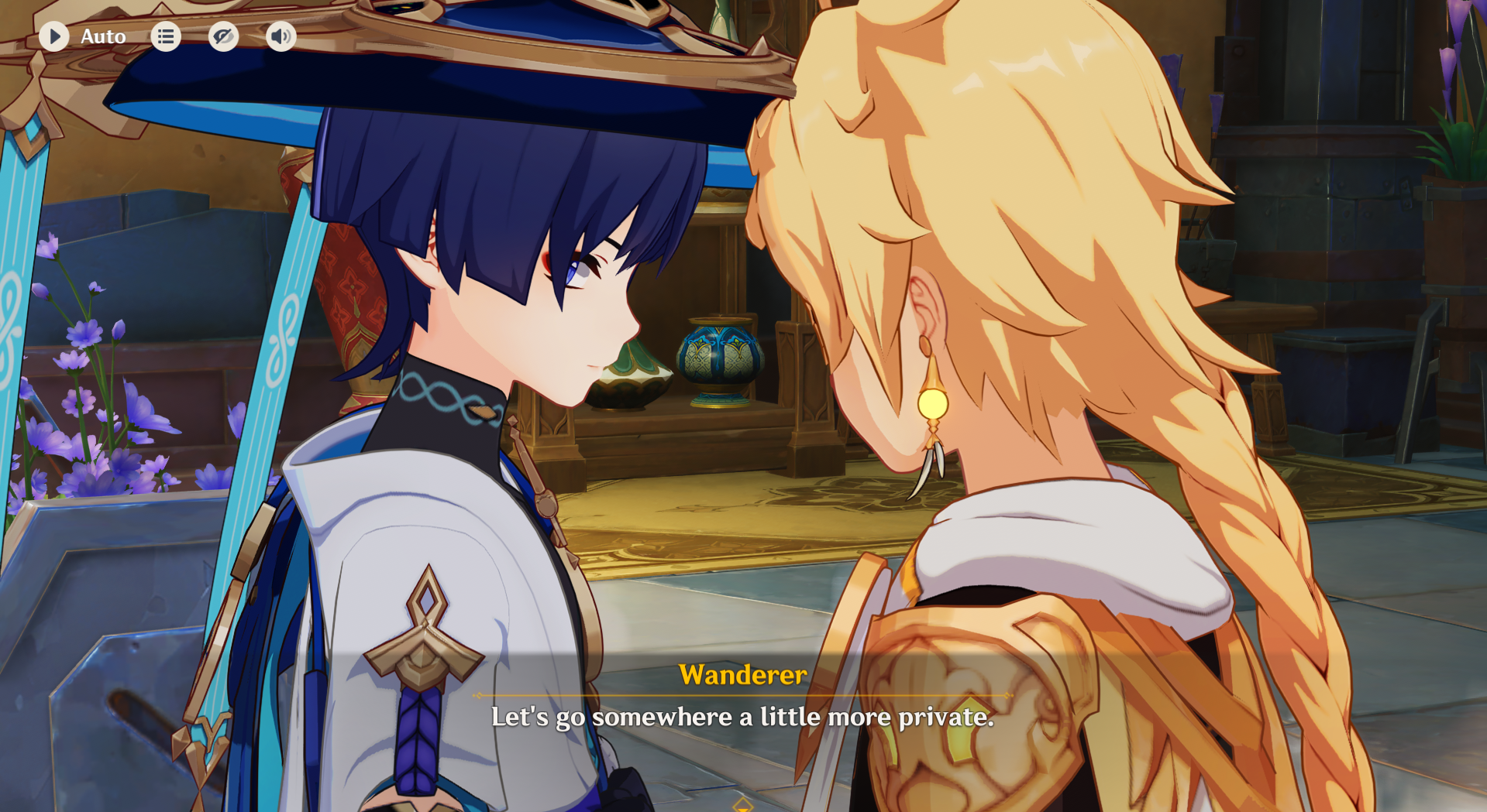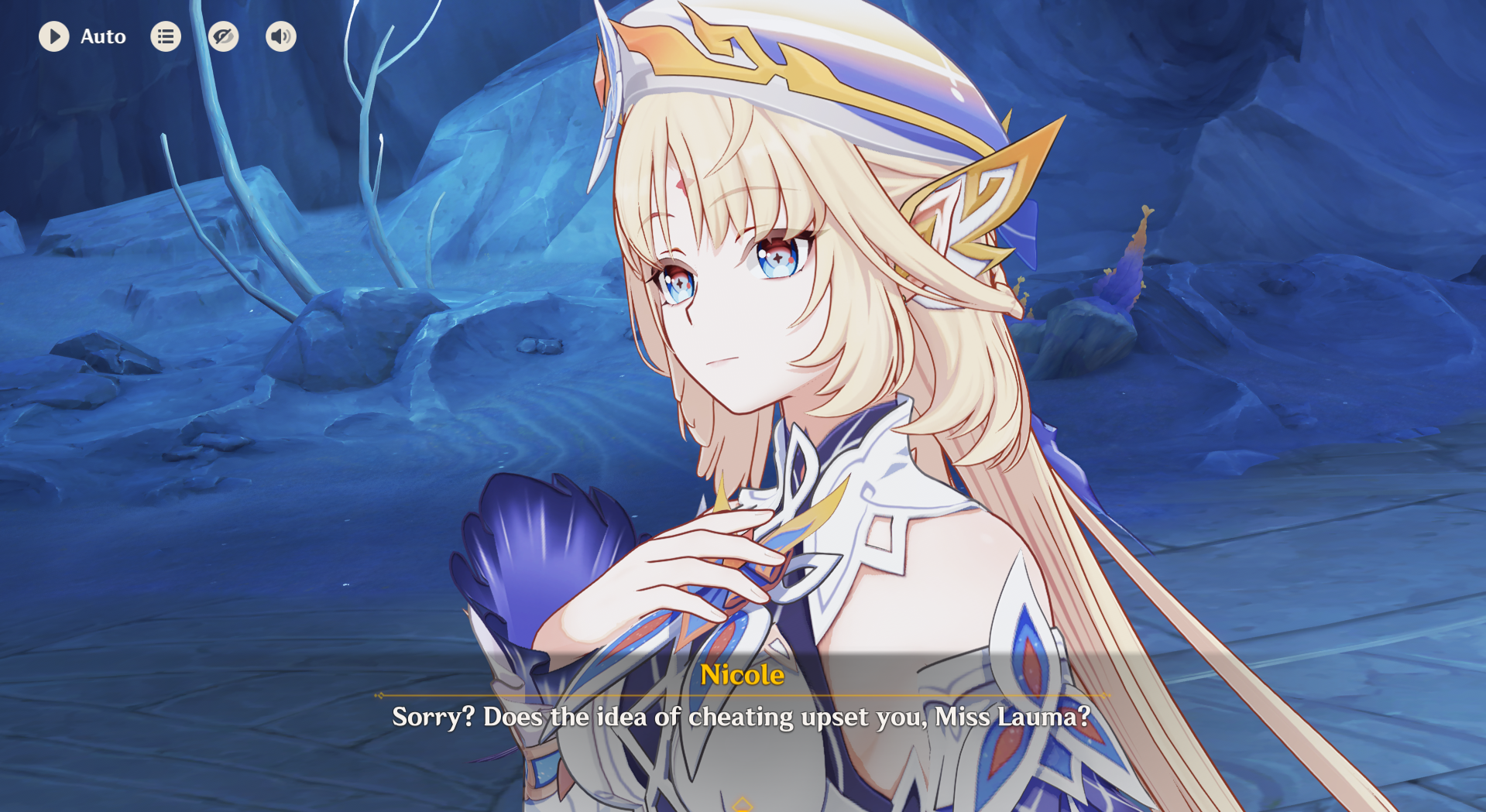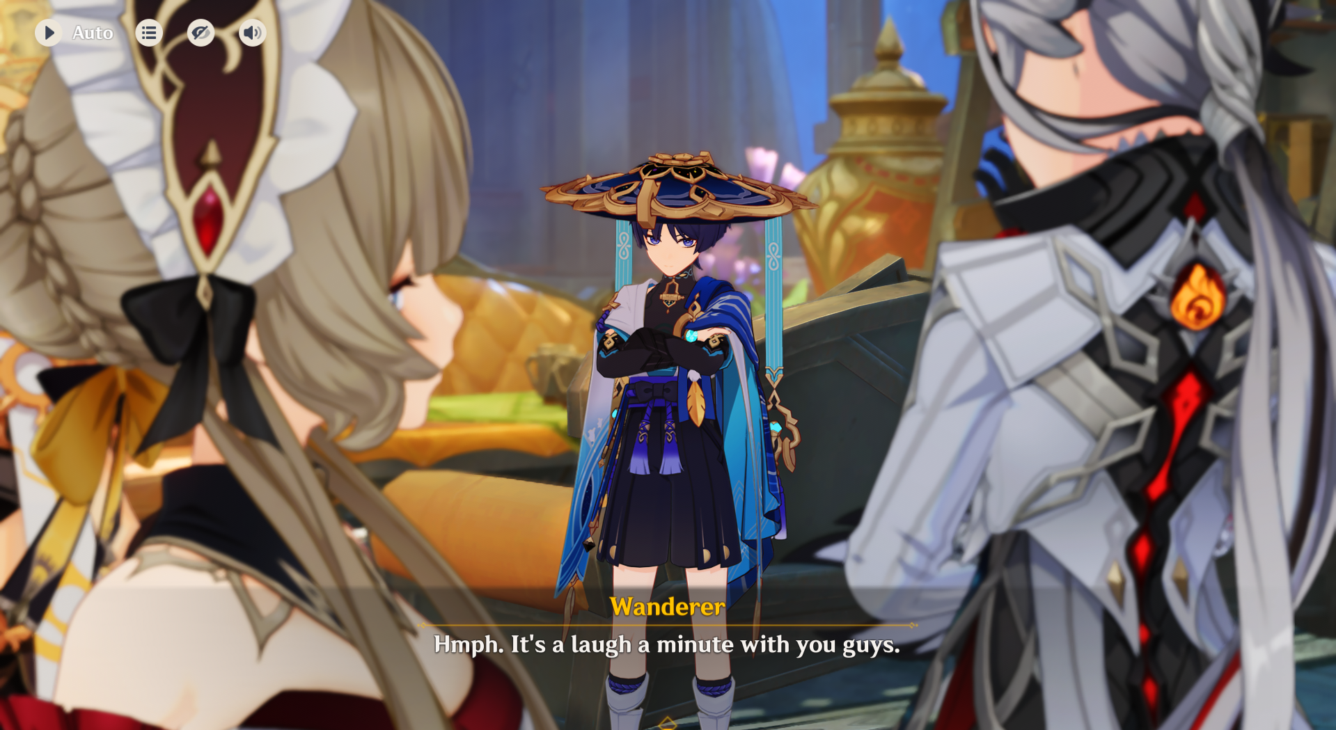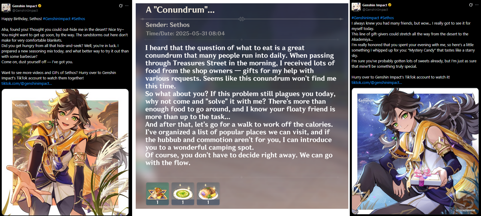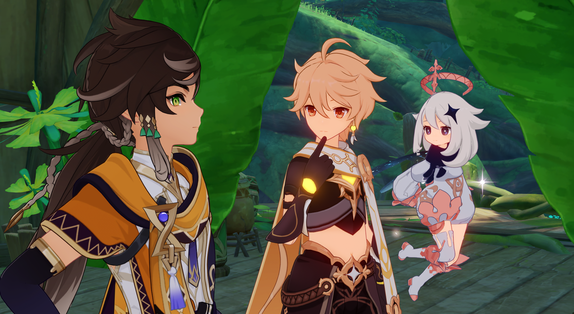 Columbina:Sandrone? Oh shes just a friend.Aether? Hes special to me and makes me feel at ease.