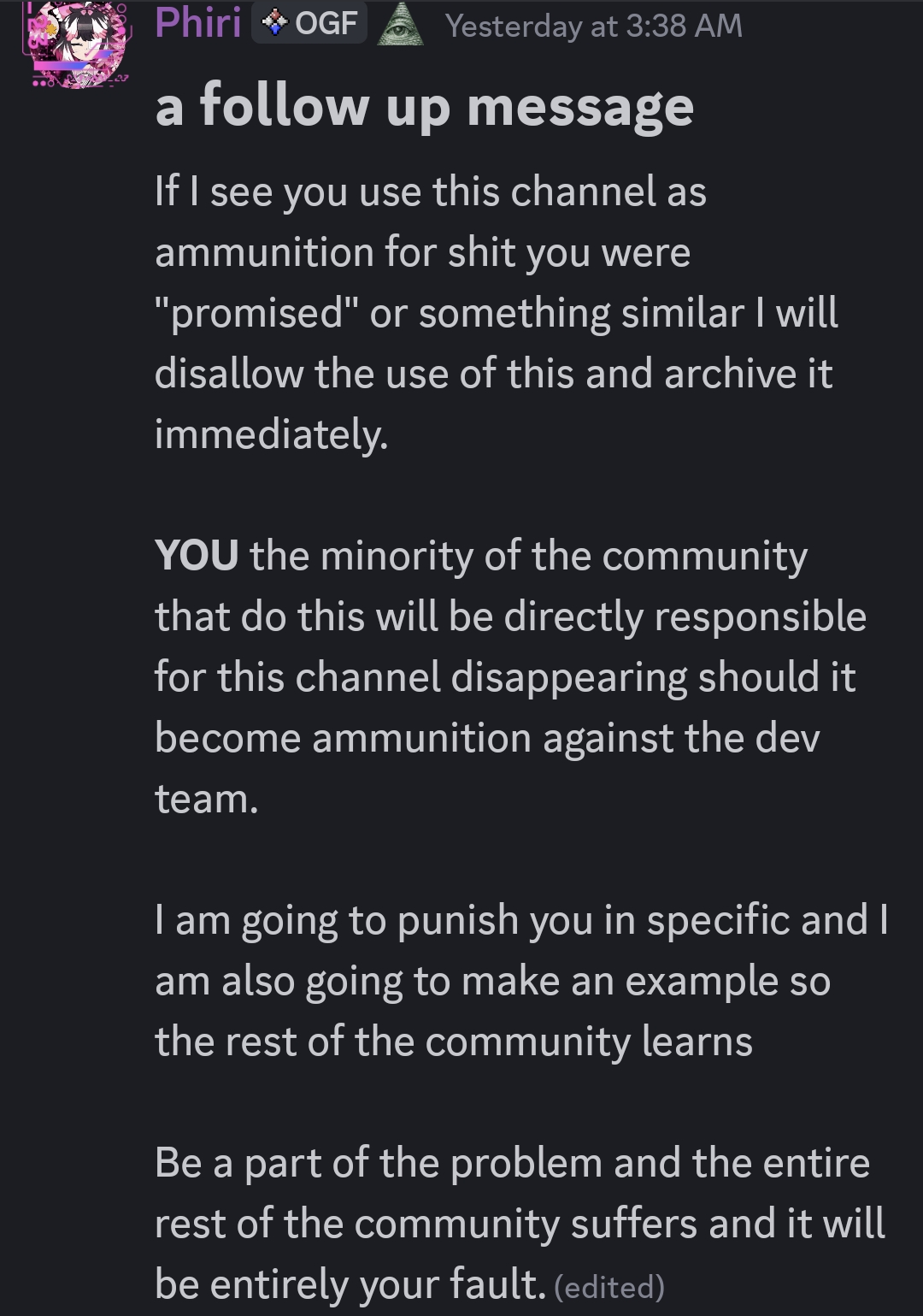 >>561646710No one here remembers Vjera because he placed most of his personality trying to make people into paypigs while pretending to be a woman, The only footnote of Amber is when they posted images of themselves cutting and dont remember the finer notes of them posting Kisses IRL face in the thread, if that was even him. there era has come and gone but DB has actually changed the very nature of the thread by his existence. Amber failed with their discord coup that tried to rip the power away from riri and was instead given to Railai. Vjera pretended to die, twice to cover his tracks when shit got too hot for him. DB is persistent and unlike the others, he is completely transparent with their intentions and will follow through with them.