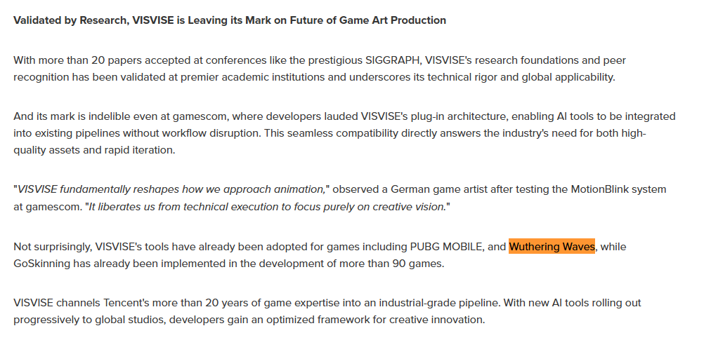 >>561661521>0 AI allegationsnigga wuthering waves use 100% AI for all animation and they announced it proudlythat's why everyone had to teleport everywhere after doing smallest movement and masking every blur and model clipping with flashbangsAI doesn't know what should happen after swinging a weapon