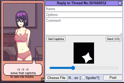 Here's my idea> make an undressing game (solve captcha to undress)> make captcha solving service browser extension> player earn get their dopamine hit for solving captcha> charge user at a lower rate than 4chan premium>profit?