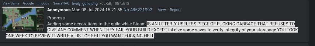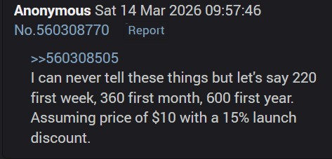 >>561757593truth supernovai'd say it takes 5 years on average to develop the skills required to reliably build up a userbase of supporters per each gameeven if it only takes 3-6 months from the first exposure of your game to a public audience to build up a sufficient base of supporters, developing that skillset takes at least 5 years of experience in operating social media pages and creating contentpeople think making the game is the hard part lmao