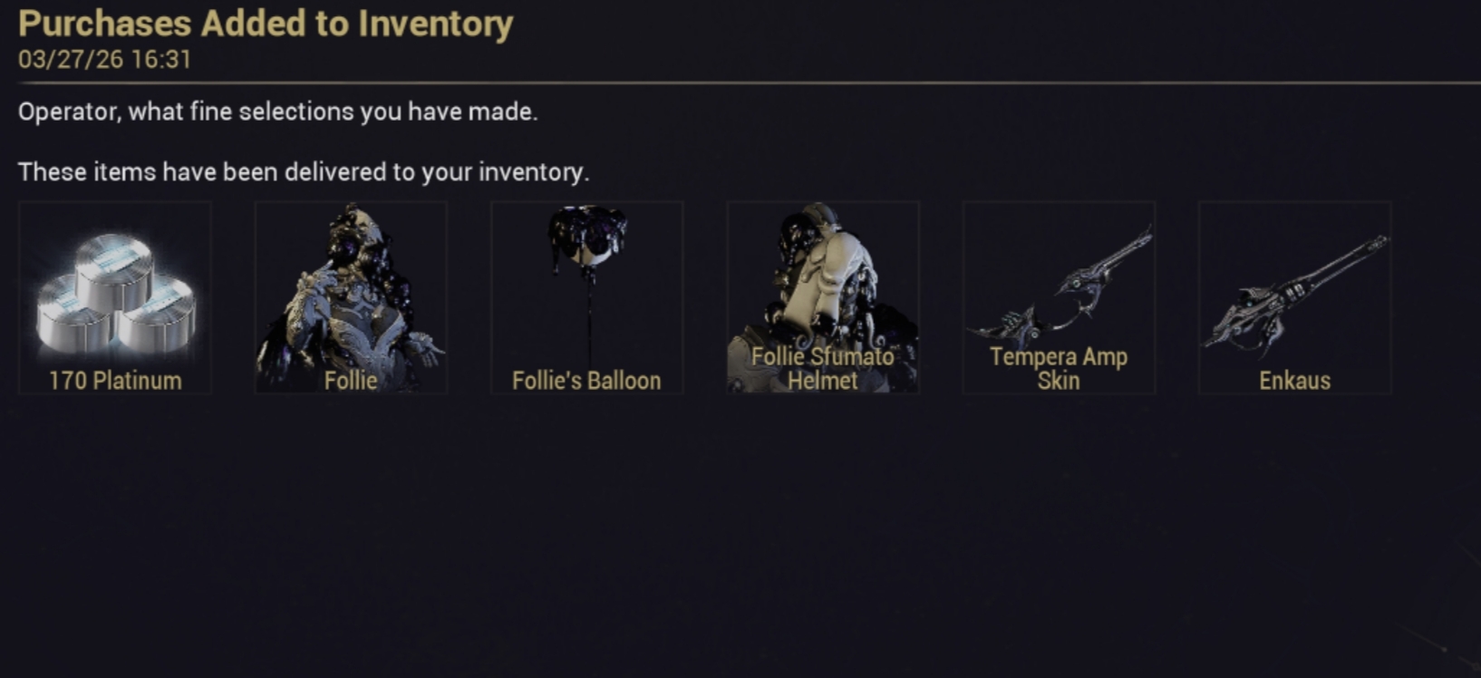 sugar tits editionPrevious Thread: >>561592136Buy Plathttps://vocaroo.com/1jJoefGnh5lT >READ the Pastebin and Wiki BEFORE asking questionsOfficial Wiki: https://wiki.warframe.com/Useful Links: https://pastebin.com/8y5vLBY5 >/wfg/ Alliance4Funbros: contact ddaavveeFTW>/wfg/ ClansOblivion: contact Wxu. or Geogre512Warbros: contact KillsawCURRENT UPDATE: The Shadowgrapher: Hotfix 42.0.2https://www.warframe.com/en/patch-notes/pc/42-0-2https://www.warframe.com/en/the-shadowgrapherCURRENT PRIME ACCESS: Gyre Primehttps://www.warframe.com/prime-accessCURRENT EVENT: 13th Anniversary and Operation: Atramentum(April 2nd)https://www.warframe.com/en/news/13-year-anniversary-is-live
