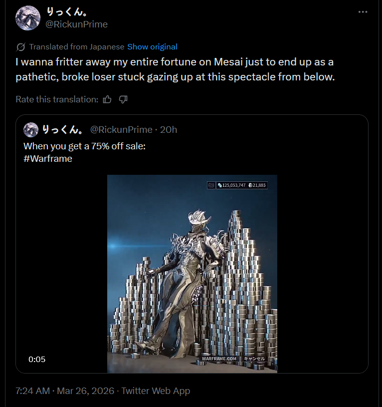 Hm, I think I'm done with this game for now a while.It's a bit weird to say that but after a week of disappointments (Frames, weapons, update) there isn't much left for me to do.Think I'll come back for the Dex alerts, farm up the Operation next week for Arcanes but that's kinda it.Basically finished decking out my favorite frames Citrine, Jade, and Ember.Ember was a real challenge but I figured out a build that can do SP Lua Survival really well and in a super casual manner.The game is really lacking in actual game modes desu. Perita is fun, so is Survival, but that's kinds it once you get to end-game.