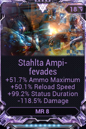 Kuva sobek: 152.9% damage83.8% heat-32% fire rateVs69.8% heat+60.8% status change +68% toxin -32.4 magazine capacity ?