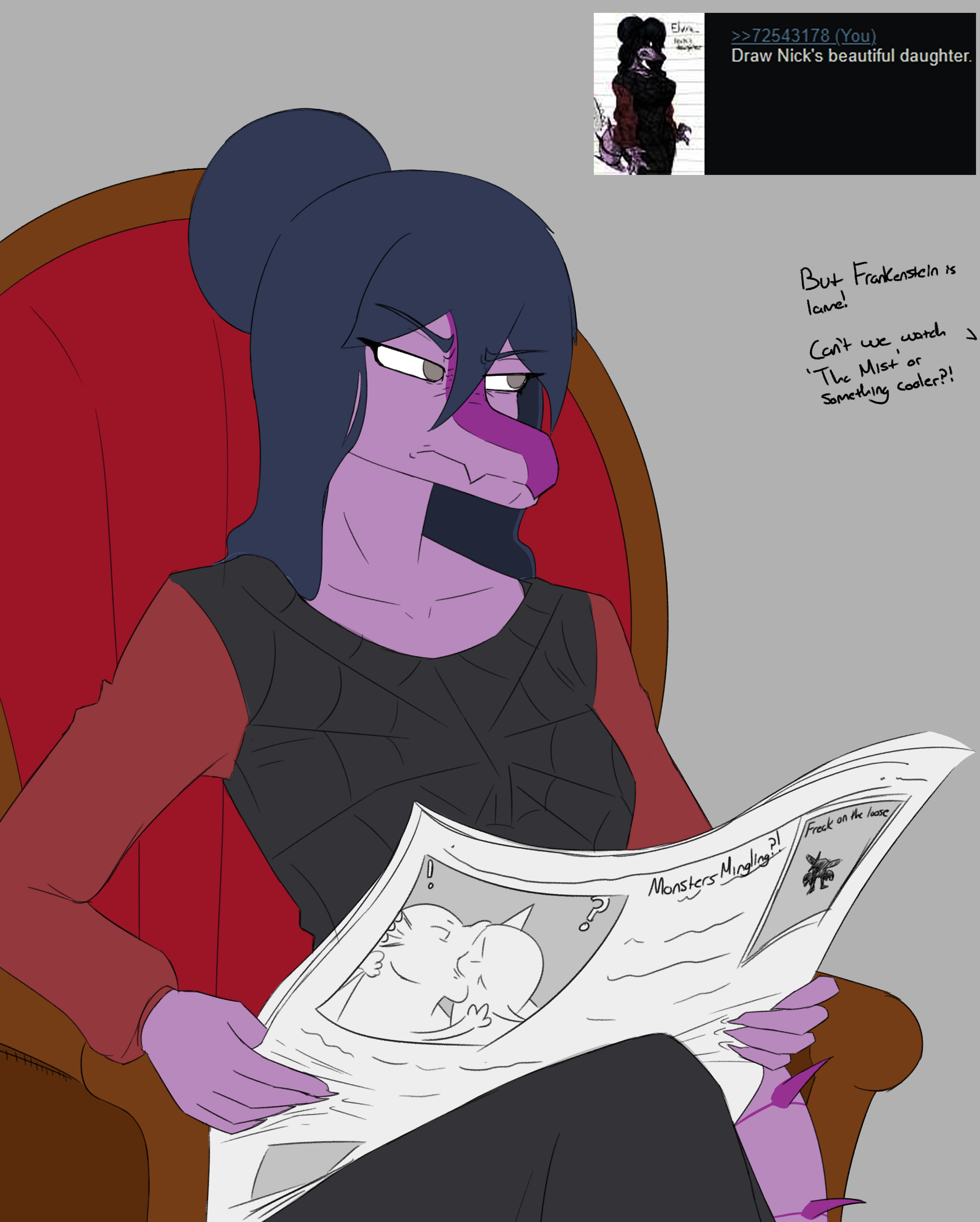 all I know is that I'm probably not going to doodle her. I already take too long on the regular characters for my liking. I don't like my chances doing one that's got a lot going on