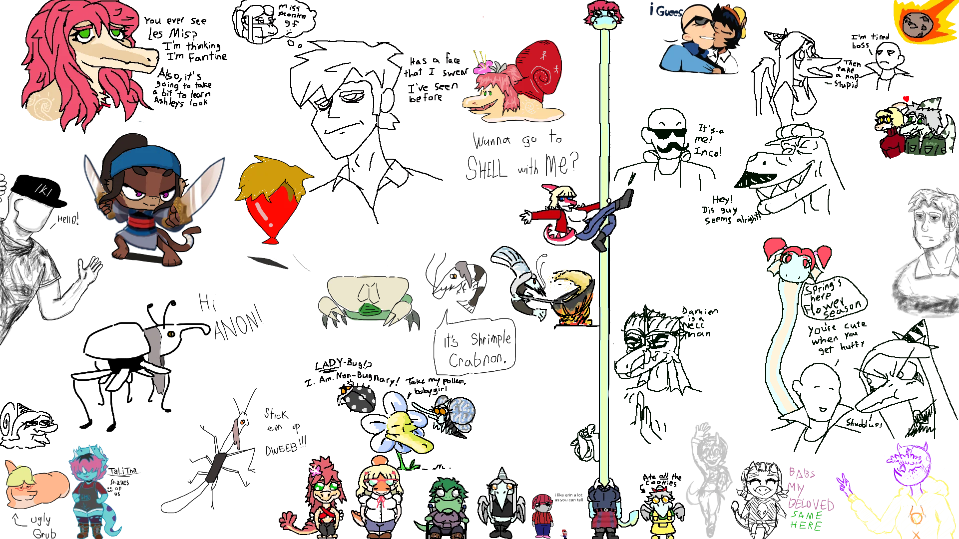 These characters really look like the design equivalent of when a cartoon has a bush or a book that's obviously on another cel to be animated once interacted with. They all stand out so much as "main characters" that it's actually kinda annoying.