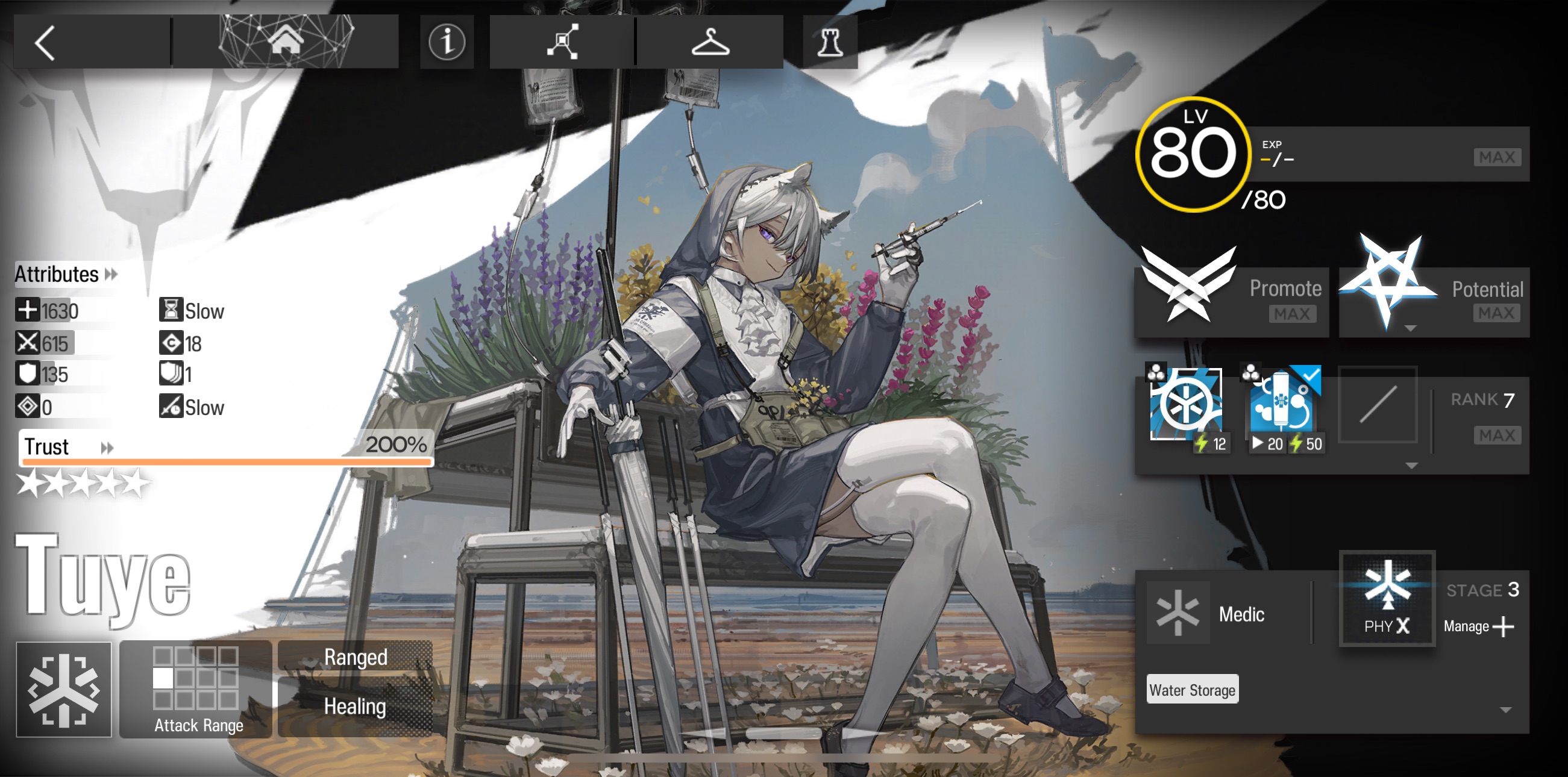 >>561689765>+120 def>+3% hp regen>can't be frozen>status resistance>+15% atk>-10% redeploy time, double if next to SilverAsh >+4 starting SP and -20% redeploy time for ops under certain DP cost >bad
