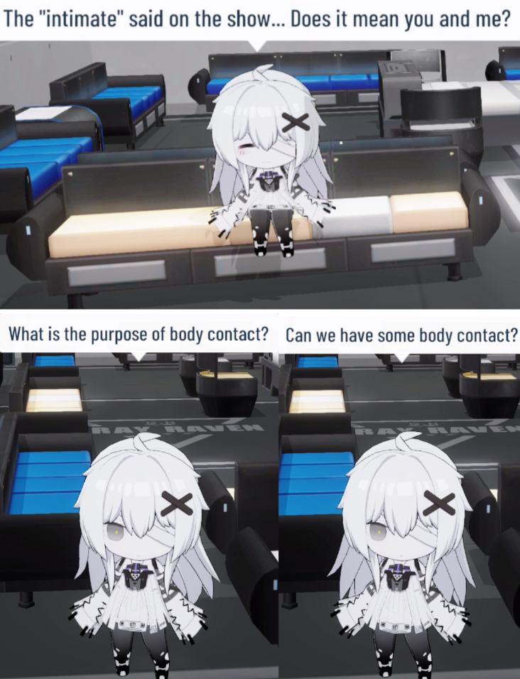 No.21 touched me inappropriately because I was kissing Vera and frotting Noctis, I didn't want anything to do with her but she forced herself upon me and then made Vera and Noctis watch as she violated me, bad experience