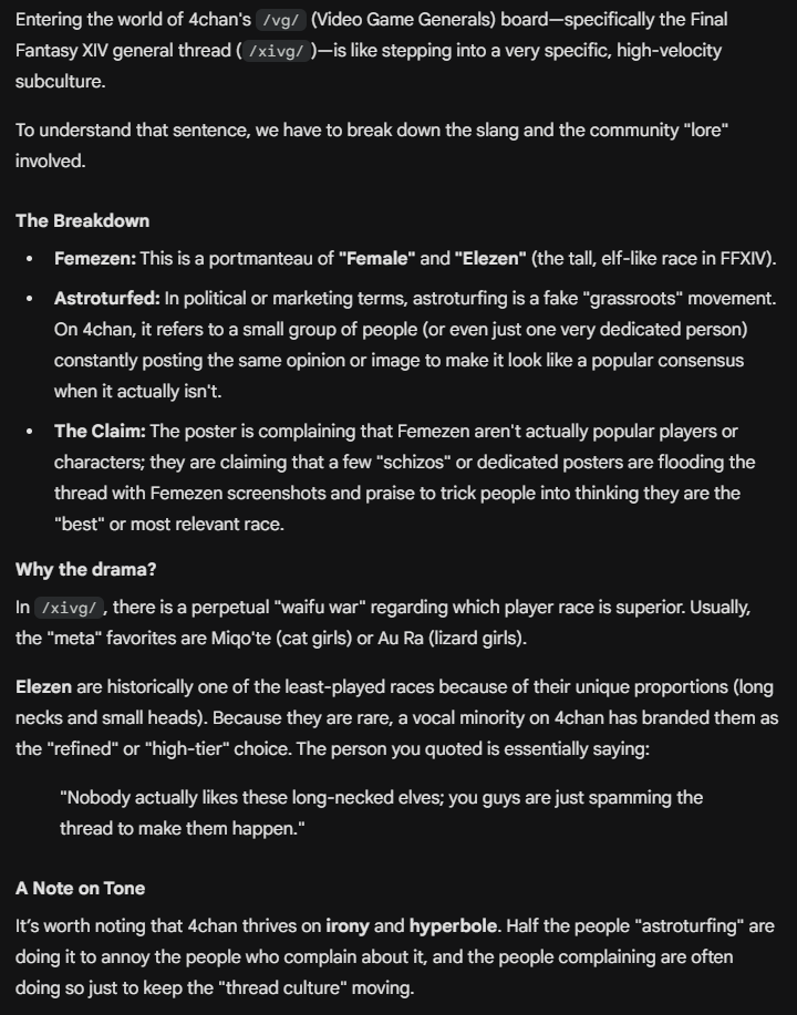 >joined in the last patch of ShB because of asmongold and is a gremlo/rich/xeno spamming twitchfag fanboy