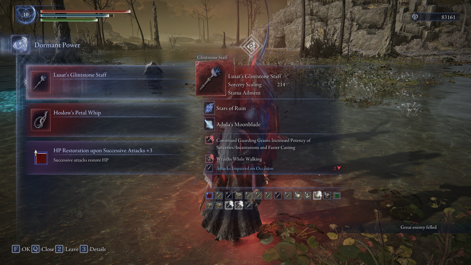 Forgot how good the glintstone kris and shard spiral are. Also why does sellen’s crown increase arc lmao. I might as well use the bubble spells.