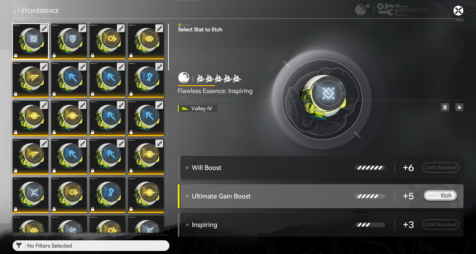 >click the essence I want to upgrade in my backpack>takes me to the etch menu>assume it's on the essence I fucking used to enter the menu>feed essences to level it up and coolant to +6 the first line>"wait a second"Who the fuck designed this retarded shit, I bet there's people that quit after figuring out they spent a whole week of sanity on the wrong weapon don't worry, I had enough essence fodder to actually max the one I wanted to max