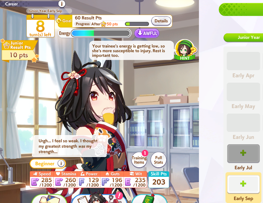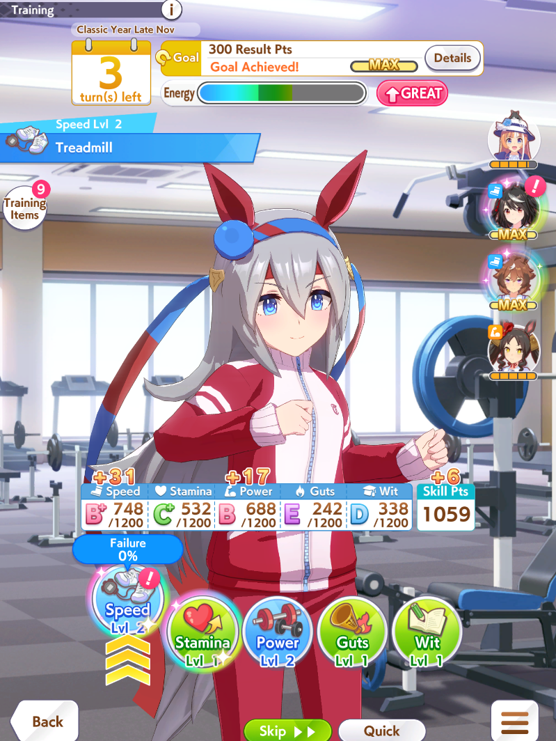 >>561792582okay I'm amending the request for advice:6 power VS 16 guts VS 14 wit. Stats before training:1200 speed 1200 stam 997 power 808 guts 606 wit