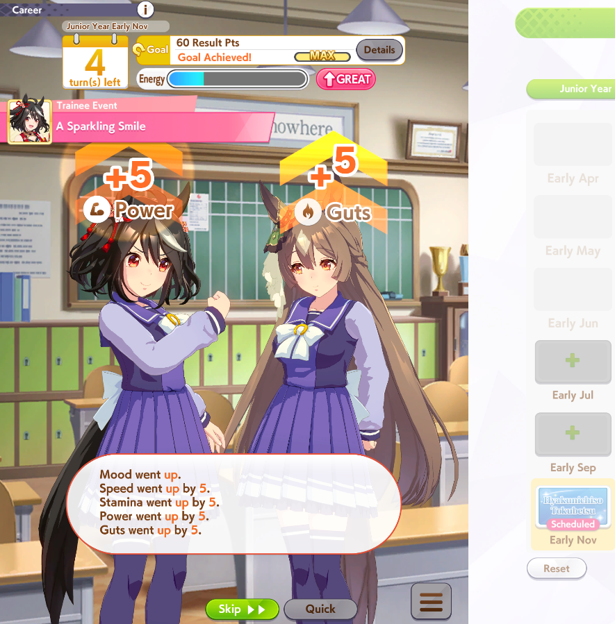 >>561791693I follow this and it just works. It lets me time the guaranteed pure passion training for the first summer.>but it's highrollinguma is a highroll game