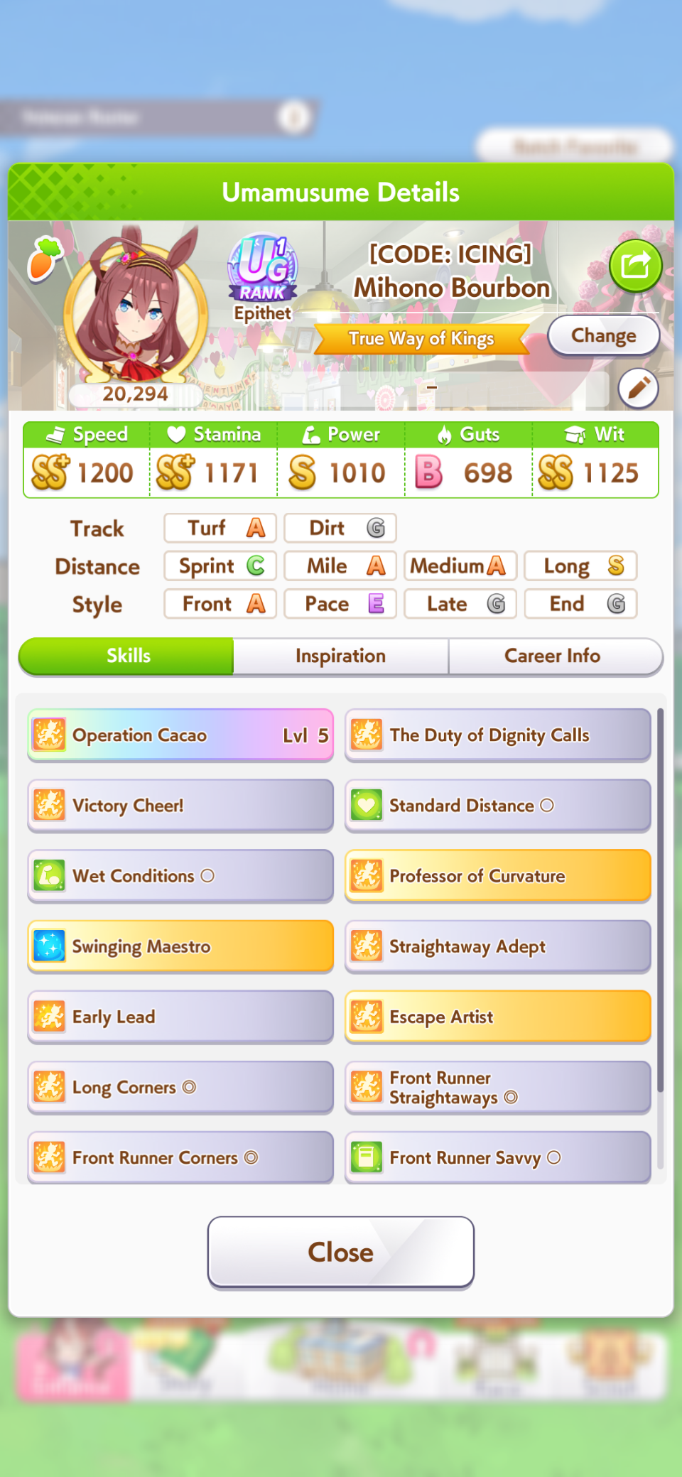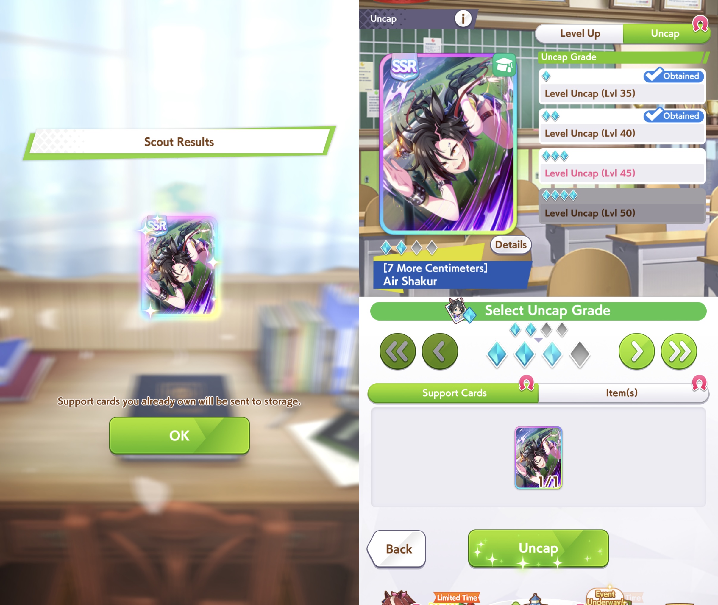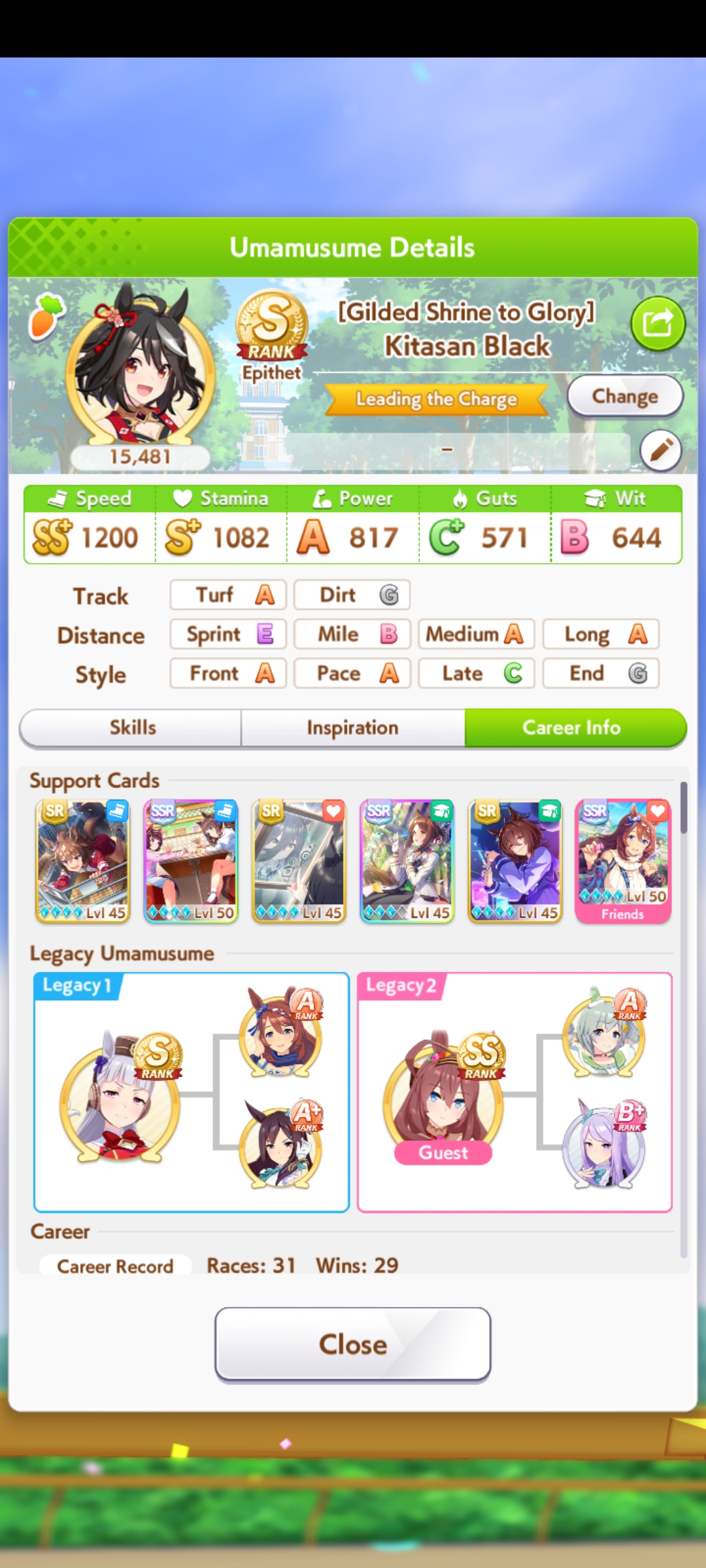 Fucked up earlier, so I redid it. Finally got an S Urara.No fast learner, and mostly shit sparks (besides S mile).