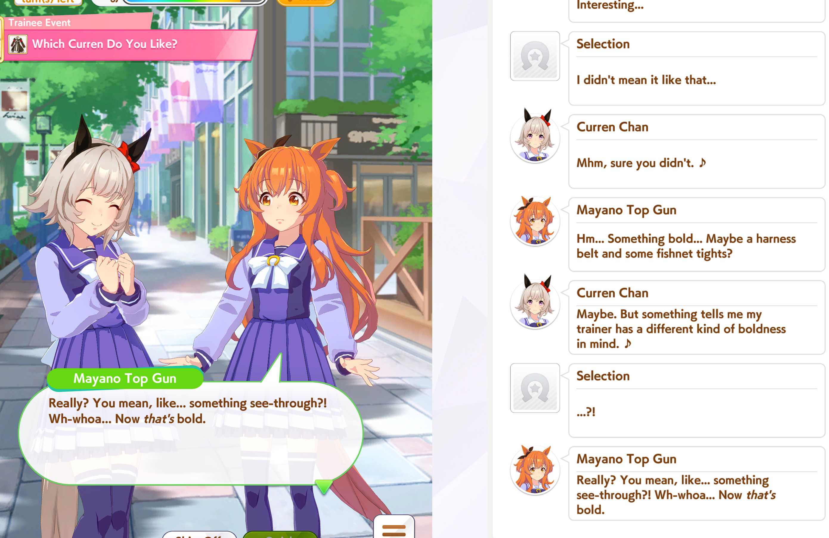 >>561777720sometimes she will hardlock herself in buying menu for no real reasonalso she keeps skipping Senior Yasuda Kinenlike, she's clearly looking for it but she couldn't detect it
