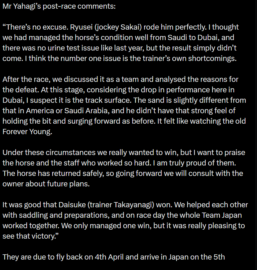 Yahagi's (Ebayan's trainer) post race comments