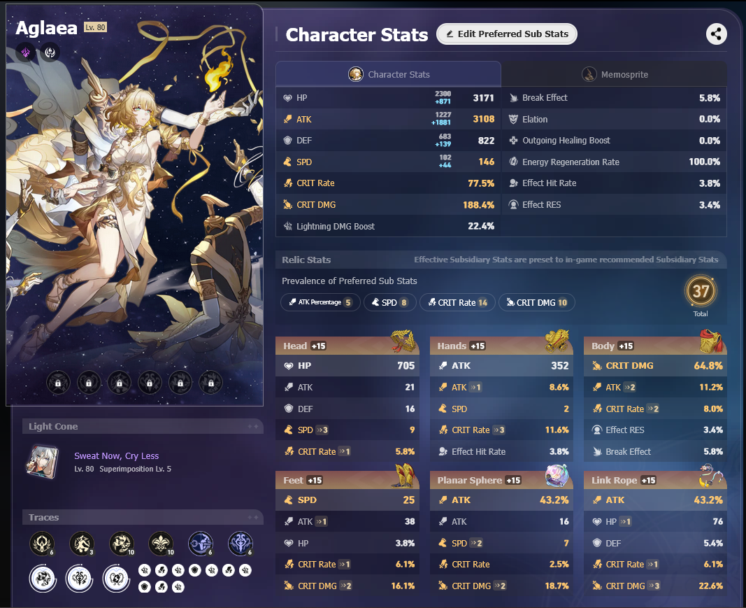 mydei + destruction blessings clear everything other than ichor memosprite