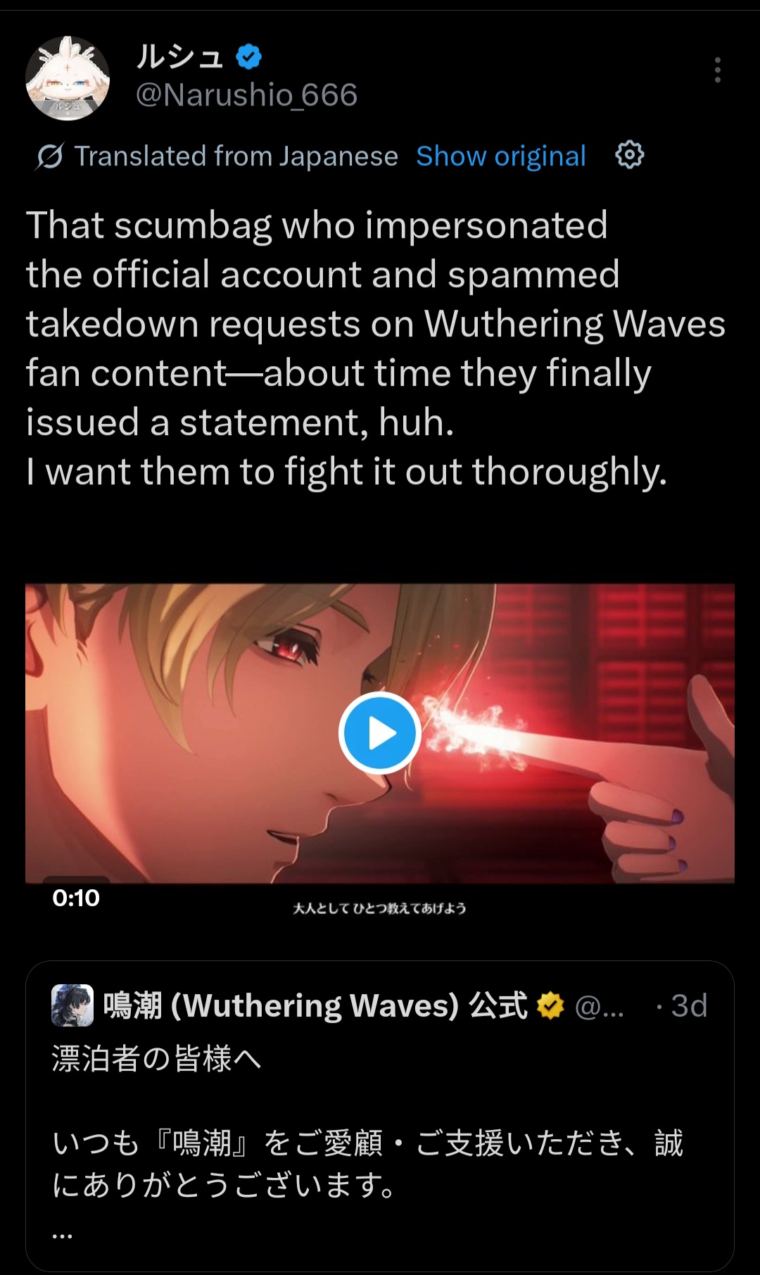 >>561850506Can't wait for NTE.I hope all the ship/yurifags migrate over there since that game has that kind of stuff.I want my comfy wuwa thread back.