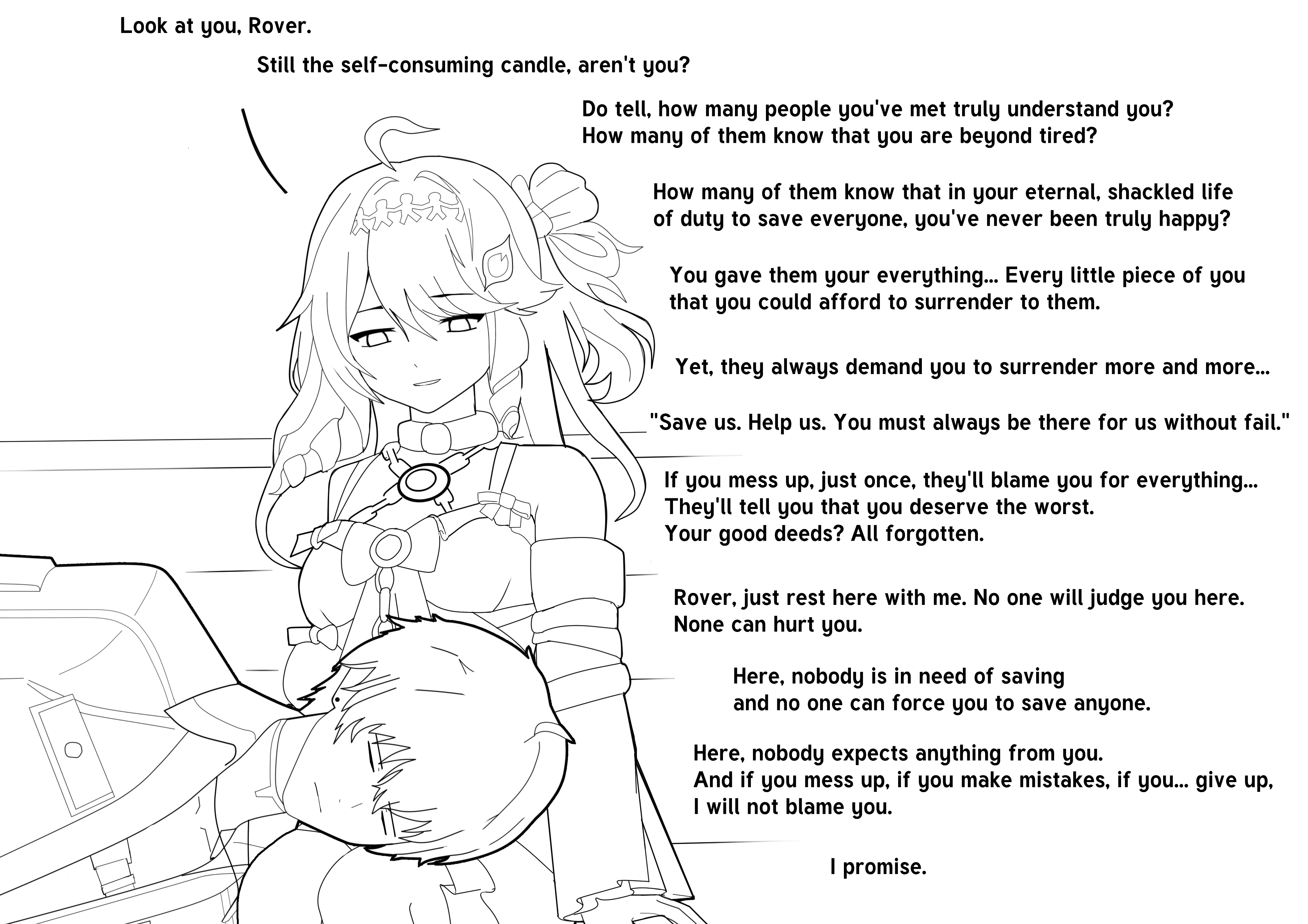 >past rover vents about his homeland to a child>present rover vents about his imperfection and how cool aemeath is to a orange hebewhats with this guy and ranting to minors?