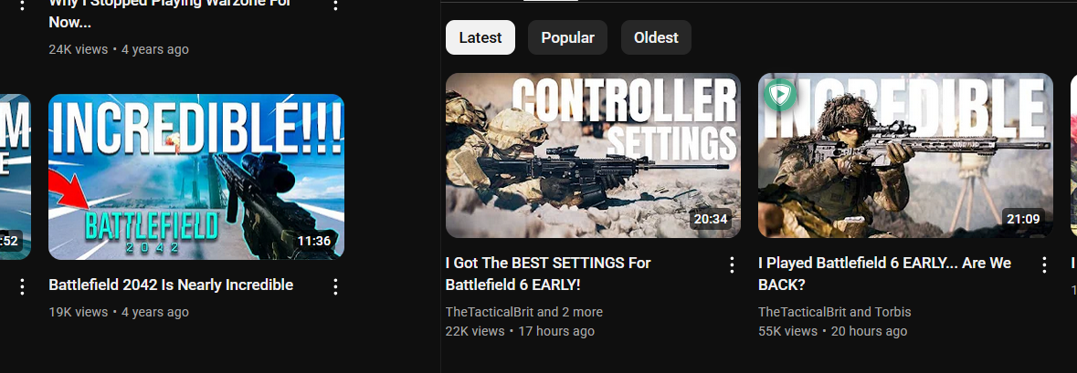 >>562291268To me this is just another cautionary tale about dangers of not telling shills to fuck off. Whether be they official or just "hyped up" fans. I nooticed about 2 weeks after launch that jackfags wasn't really enjoying the game but kept pumping out glowing reviews. Not even gonna check his channel but I assume he has now made a number of "bf6 has issues / bf6 has lost its playerbase" vids as is customary of the "we're back/it's over" type of influencer.