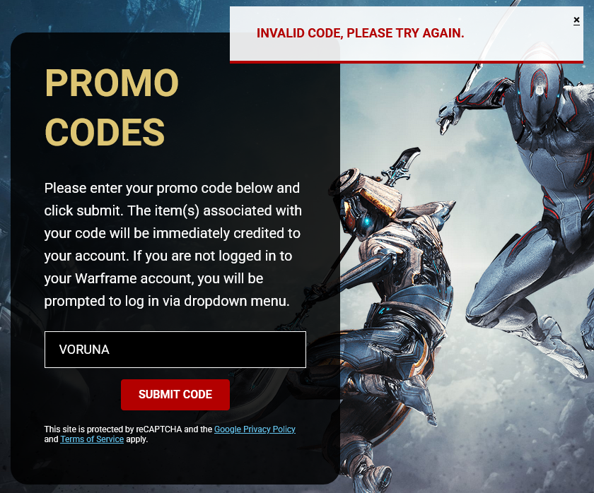https://www.warframe.com/en/news/voruna-prime-access>FREE CODE GIVEAWAY>Honor the wolven queen's Prime debut with a limited-time giveaway! From April 1 - April 15, you can claim a free Voruna In Action Glyph and Honored Pack Collection by logging in and entering code: VORUNA