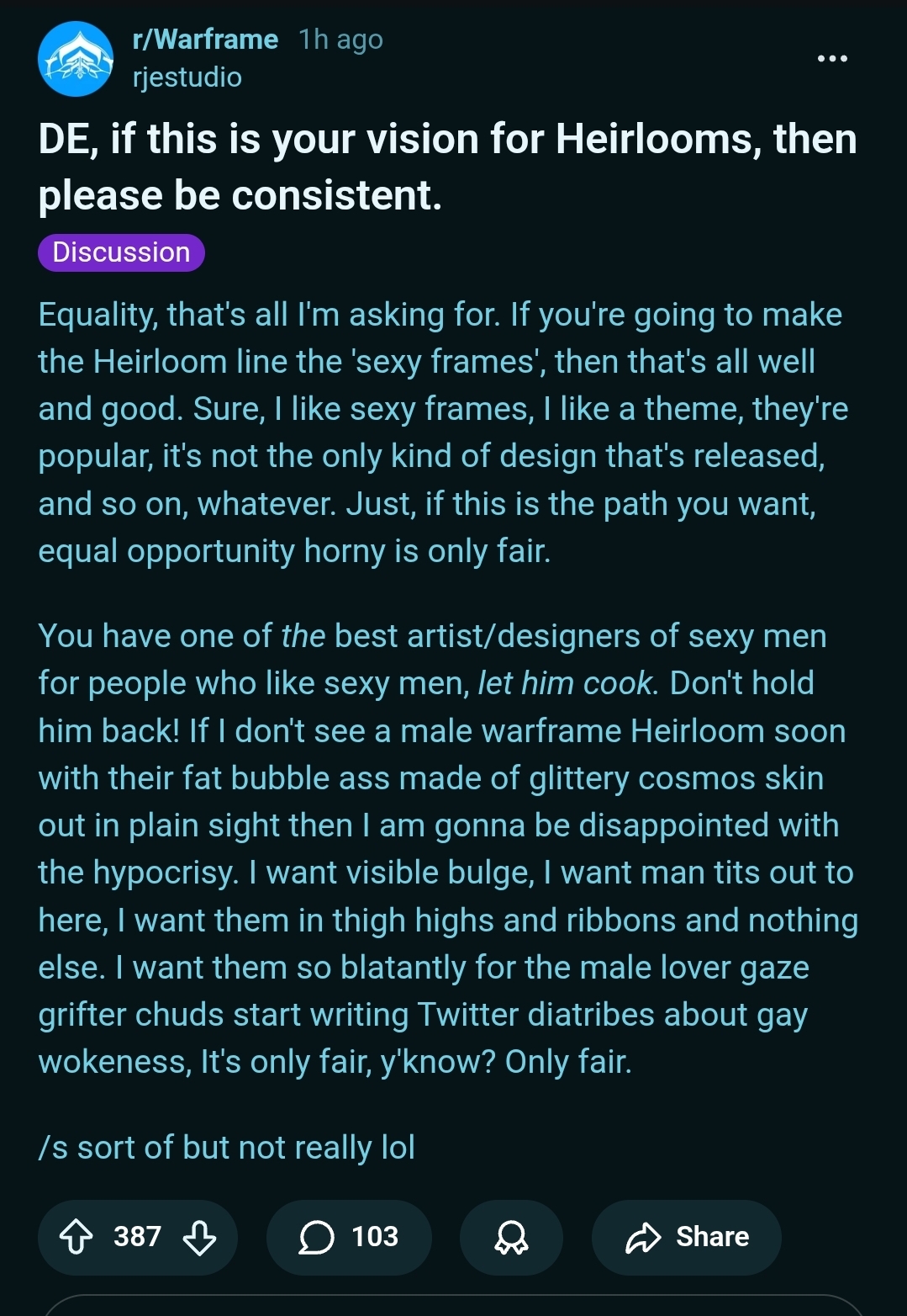 Love the Voruna trailer but kinda really fucking hate that the frame associated with the Moon and it being in the Void as long as it was and the Operators and the reservoir…Is set in slopvania and and implied to be another fucking Warframe for the godforsaken fucking Drifter.