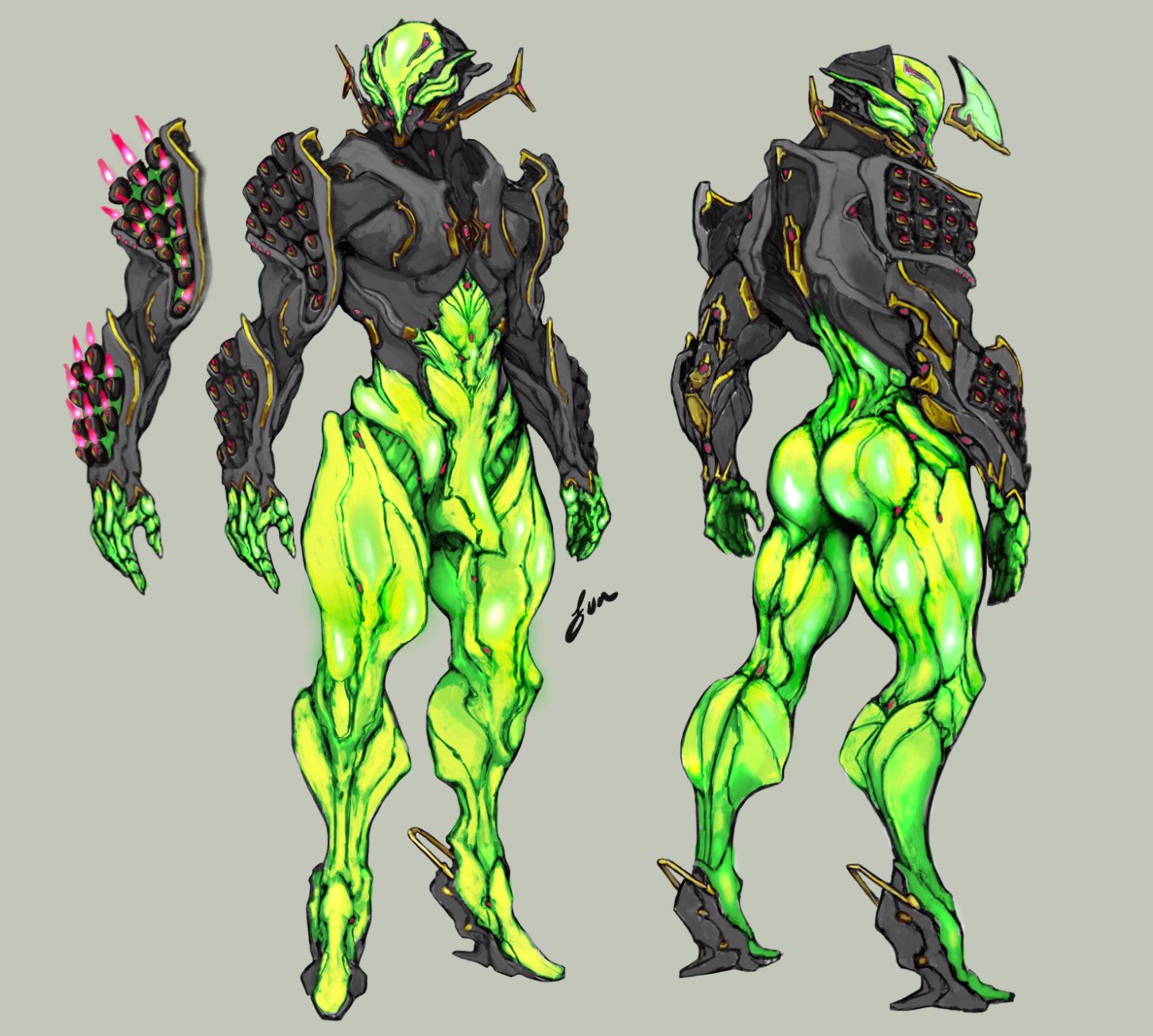 I don't see how her ingame skin will resemble this art at all. Her head is huge and obstructive which DE has always nerfed to hell when bringing skins into the game, she has a lot of small make or break details that always get forgotten when they do the 3d models, and they'll probably cover her back up to bring her more inline with Valkyr's nude amounts.