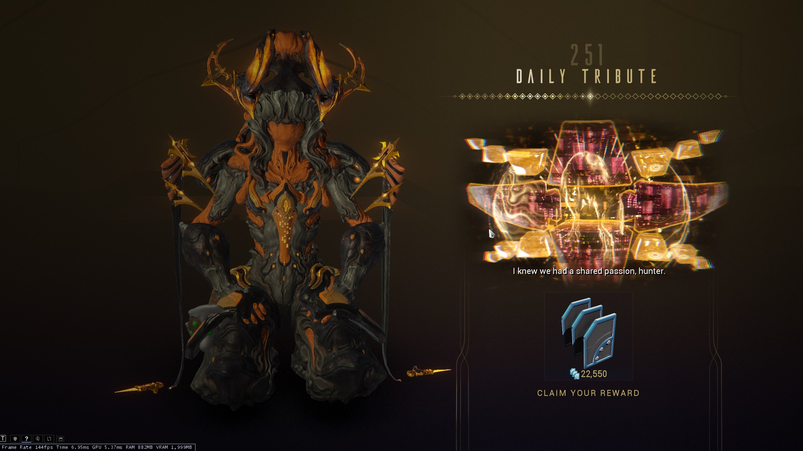 >incarnons for obex, ballistica, destreza, stug, and vectis>deluxes for baruuk (again) and dante>mesa heirloom with her pussy, ass, and titties out>voruna prime>I have been specifically denied of my tigris incarnonOnly the Mesa Prime sexmachine interests me.