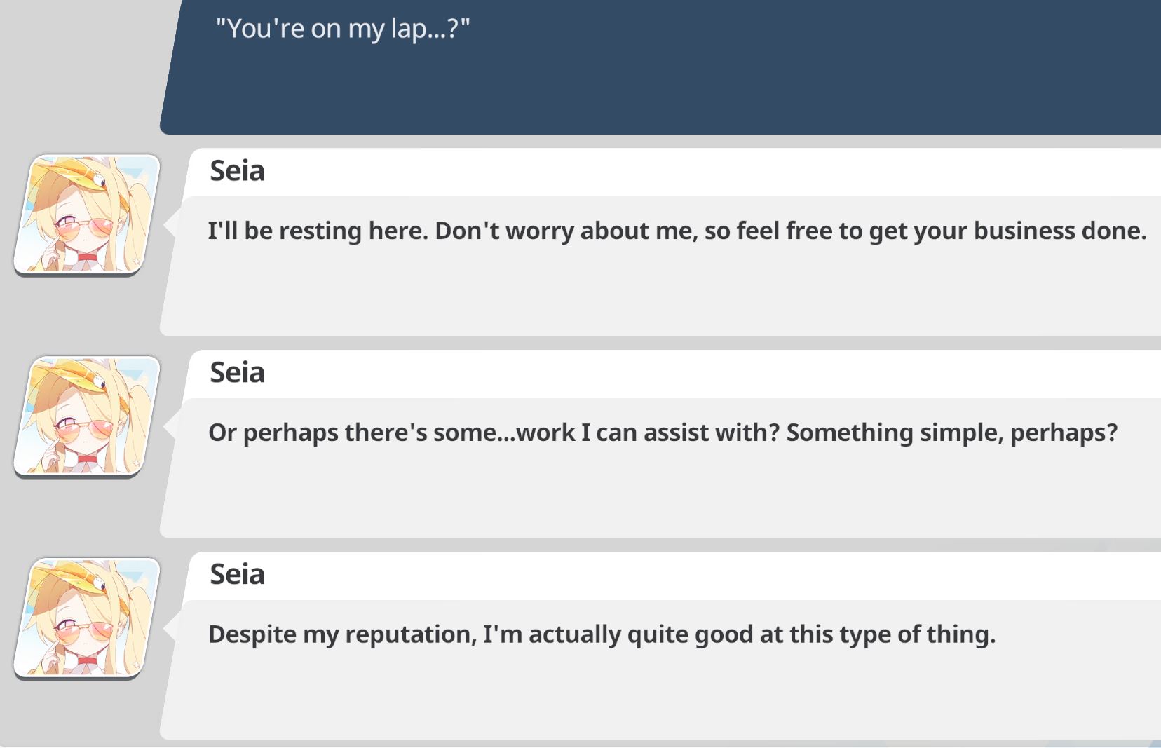 >>561836453she IS a different entity because she doesn't gain affection rank bonuses and can be at the cafe at the same time