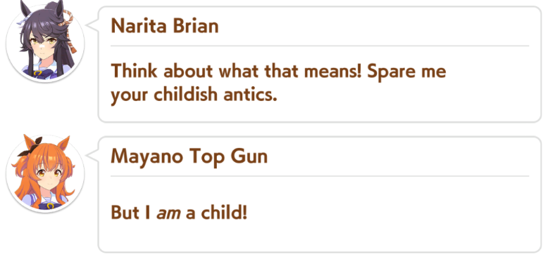 >>561816309Too broke at the moment. When I get a job, maybe.>>561816321I mean I didn't laugh at it either, I just found it mildly amusing.>>561816409Hey look, it's the ONLY uma that's even remotely close to my height... and I still have to lean down to look her in the eye.