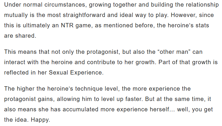 can't wait for this ntrge to be released, his last one was a bit long and convoluted but the ideas were absolutely there with sub ntr events for every female character, very hot idea