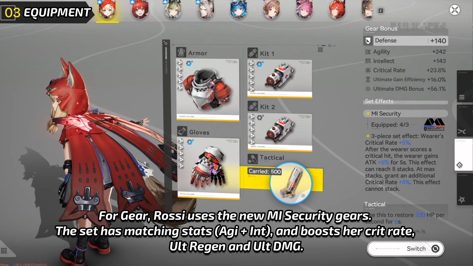 Looking at the pieces that can benefit a crit based character, Rossi is Agi - Int?