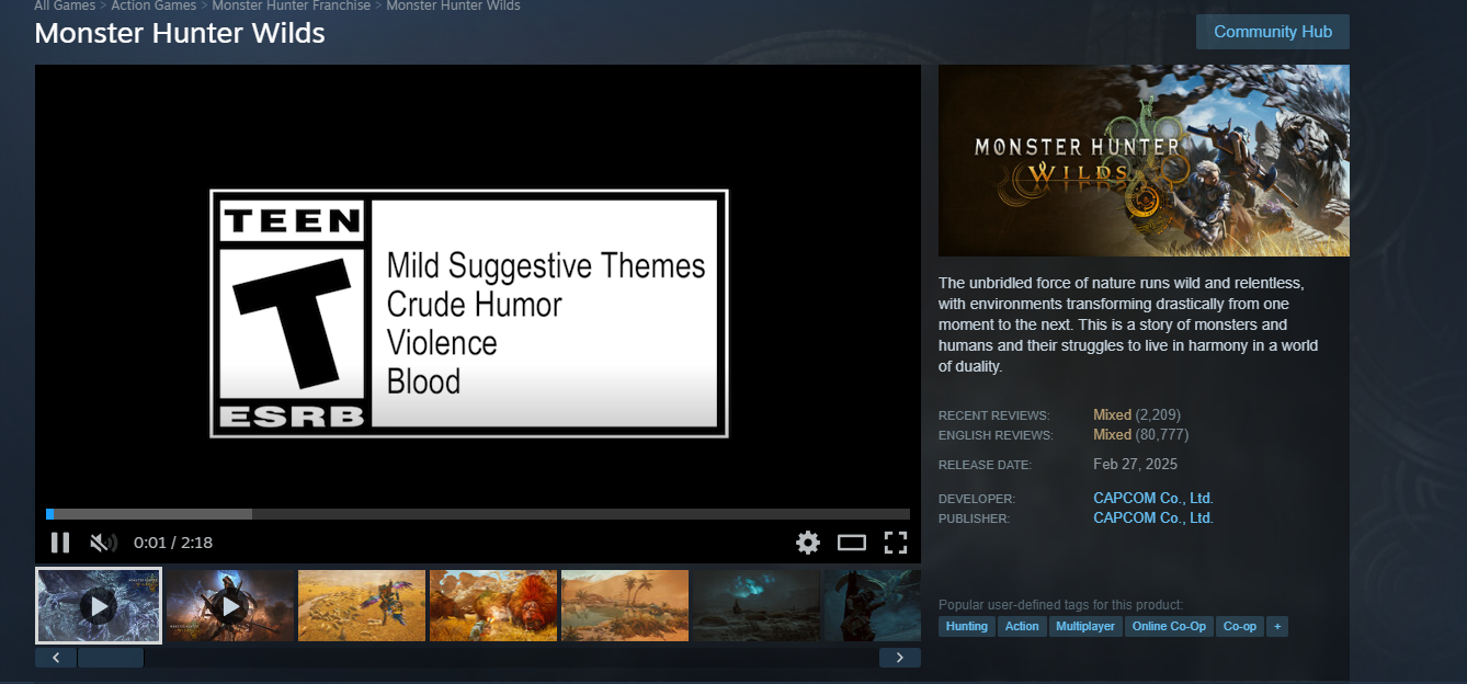 Steam: https://store.steampowered.com/app/2246340/Monster_Hunter_Wilds/