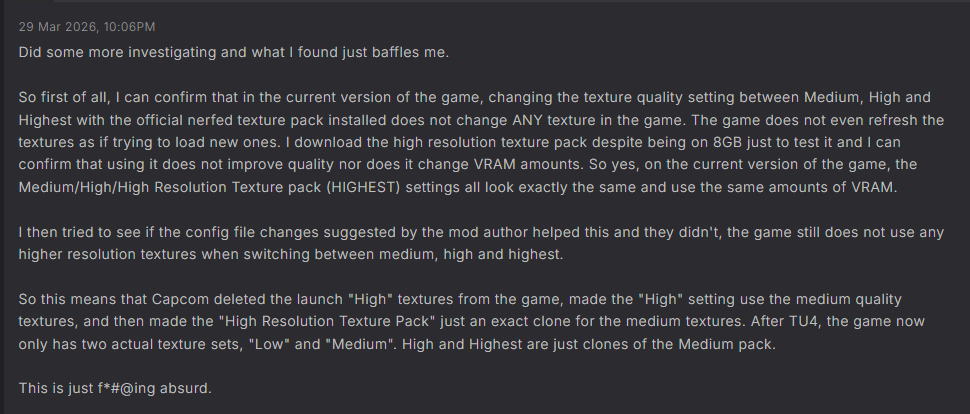 "WOOOW NO WAY THEY 'OPTIMIZED' WILDS BY MAKING ALL TEXTURES HIGHER THAN MEDIUM, MEDIUM?" ok? Cool? No one is surprised?