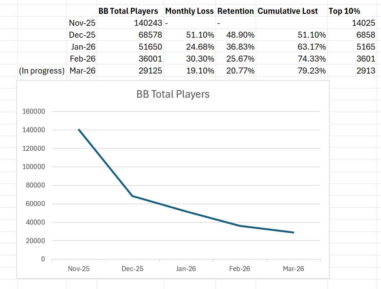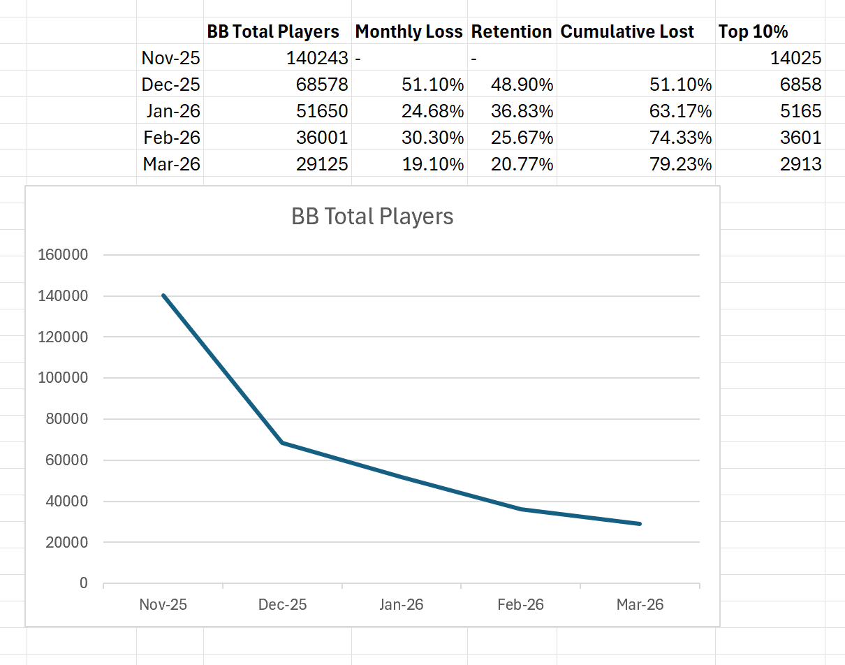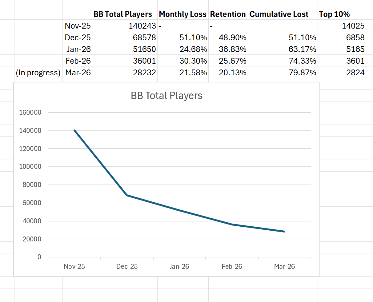It probably isn't since the game is so low budget that they could keep it running even if it falls to around 100k~ but it doesn't make it feel any less worse though