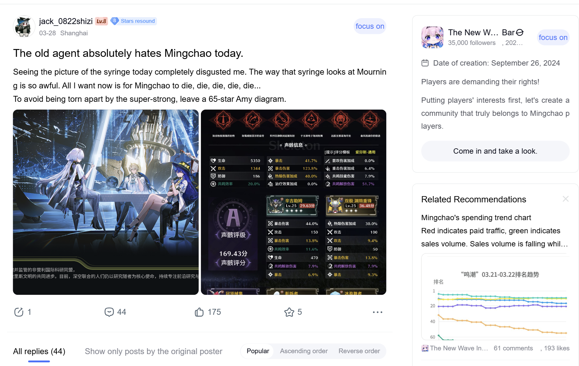 Unironically, I want this game to struggle, when the devs actually need money, the only people they’ll be able to rely on are ML players and coomers. Just look at how BD2 and Snowbreak managed to come back from their tombstone. Even Hoyo the most cuck company had to do a complete 180, making Cyrene blatantly ML friendly and cuck Phainon, their biggest shill, just to sell that $300 bow.