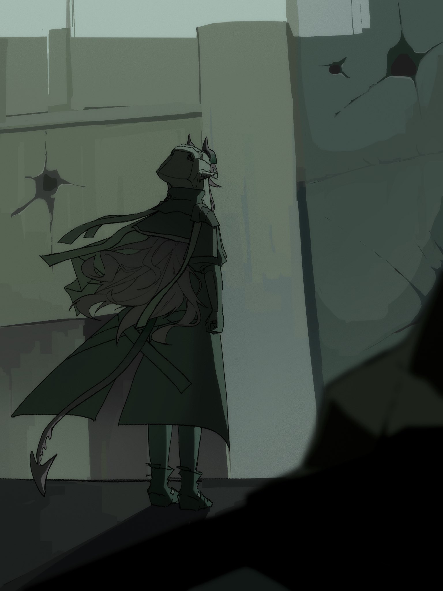 Does Theresa have a devil tail?really hard to tell some of the sarkaz races apart or if some of them are just nondescript "mutts" W and Ascalon have but the twins only have horns and no tail/elf ears.