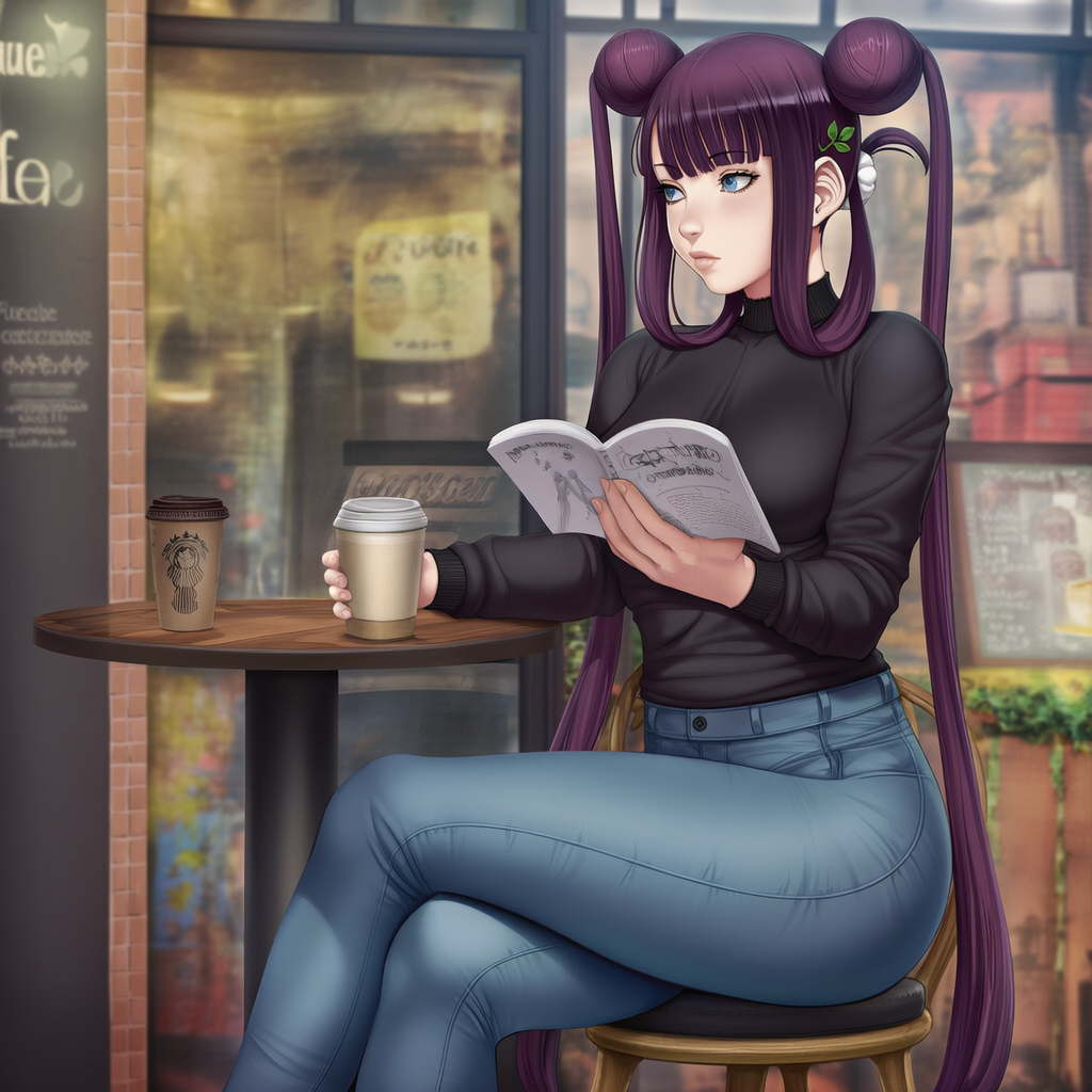 Yuyu reading at a cafe...