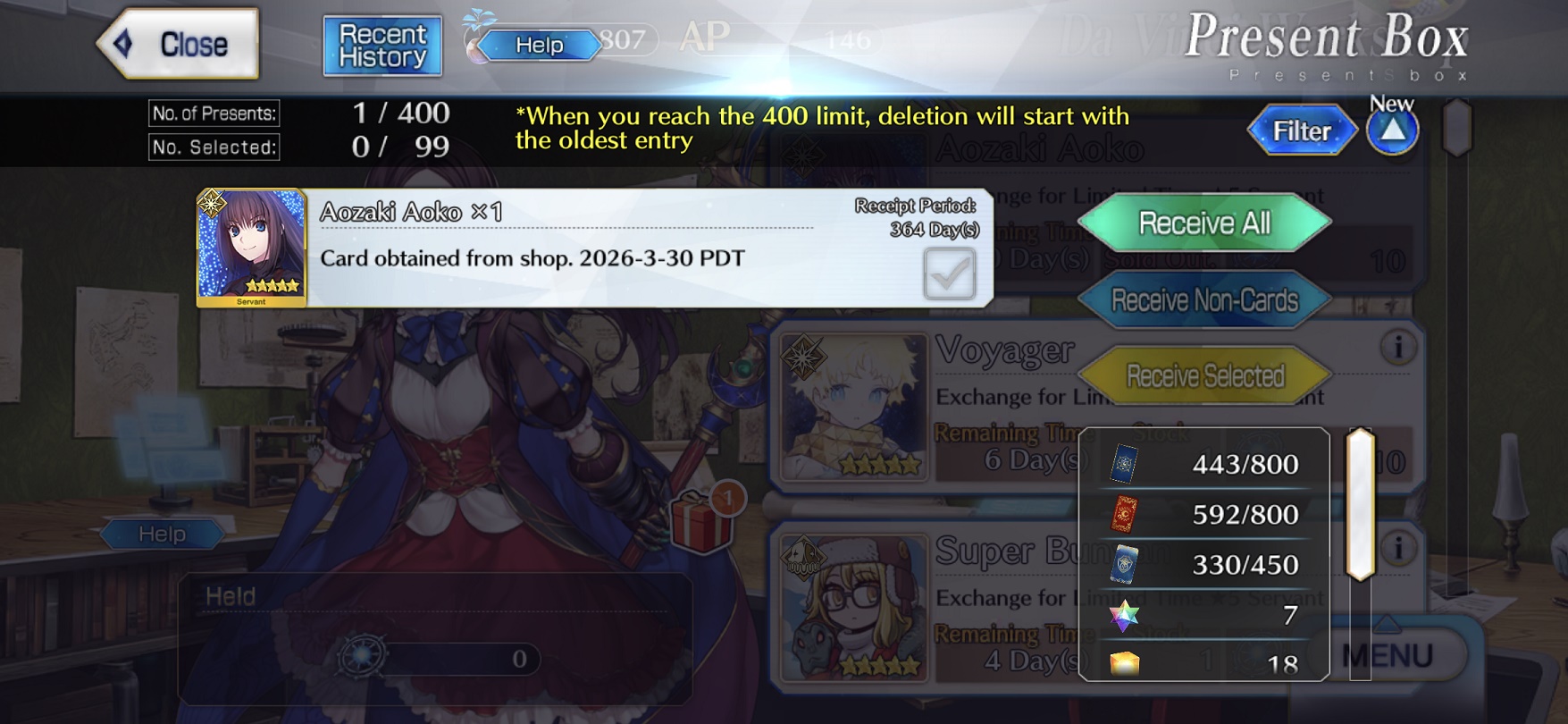 >400 sq gone >No aoko I don't know why I save when I never get things I like