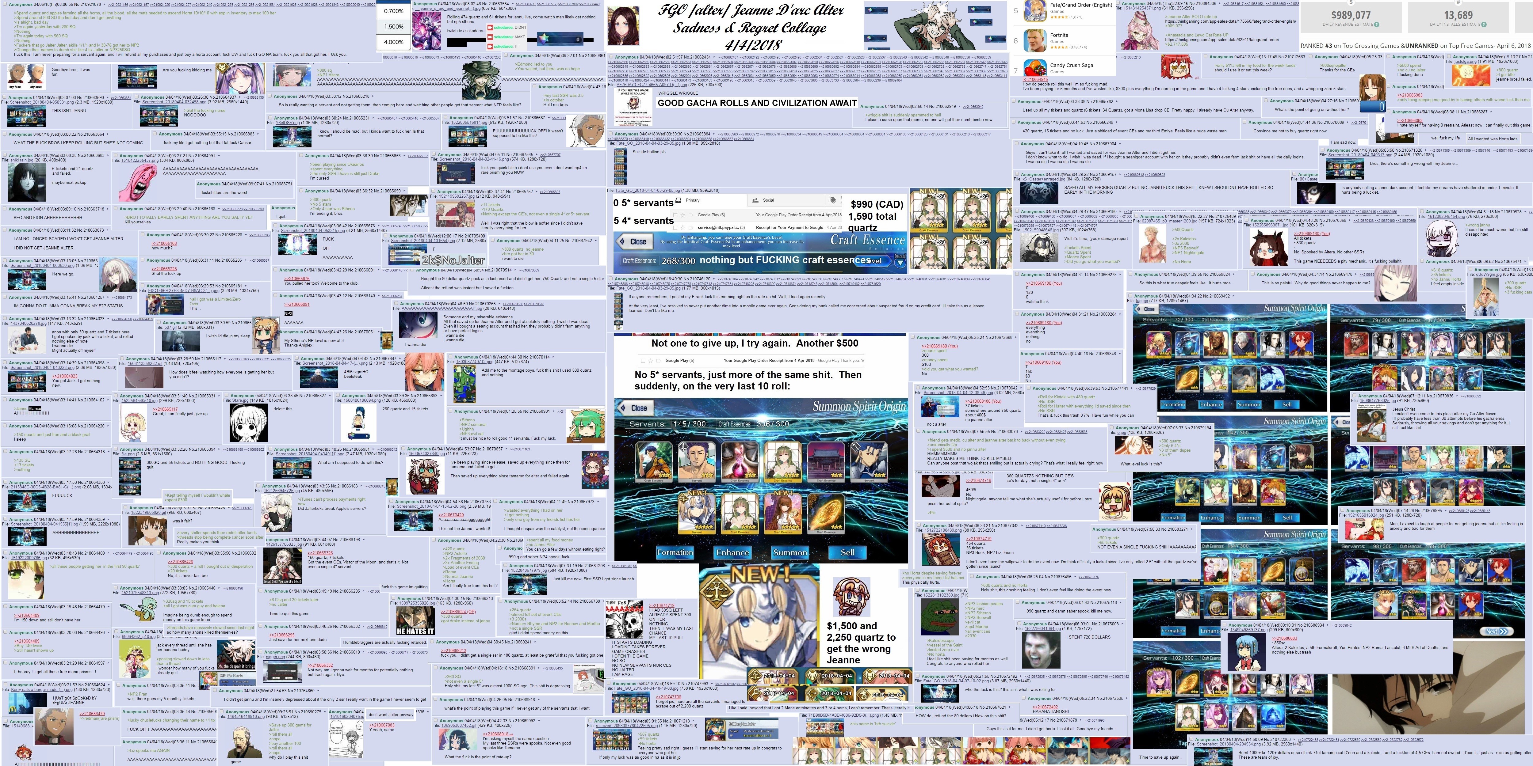 >>561953174>>561953278Yeah, I'm fairly sure Aoko's the one who popped that cherry.I recognize I'm fairly lucky, but I guess it's diluted by the fact I have a friend who has, no bullshit, beyond EX+++ tier luck.Motherfucker got, and I am not fucking kidding,NP4 Orion and Artoria in a single ten roll near the start of the game.He is consistently the luckiest motherfucker in any and all gacha games he plays in.So my perception is kind of fucked.