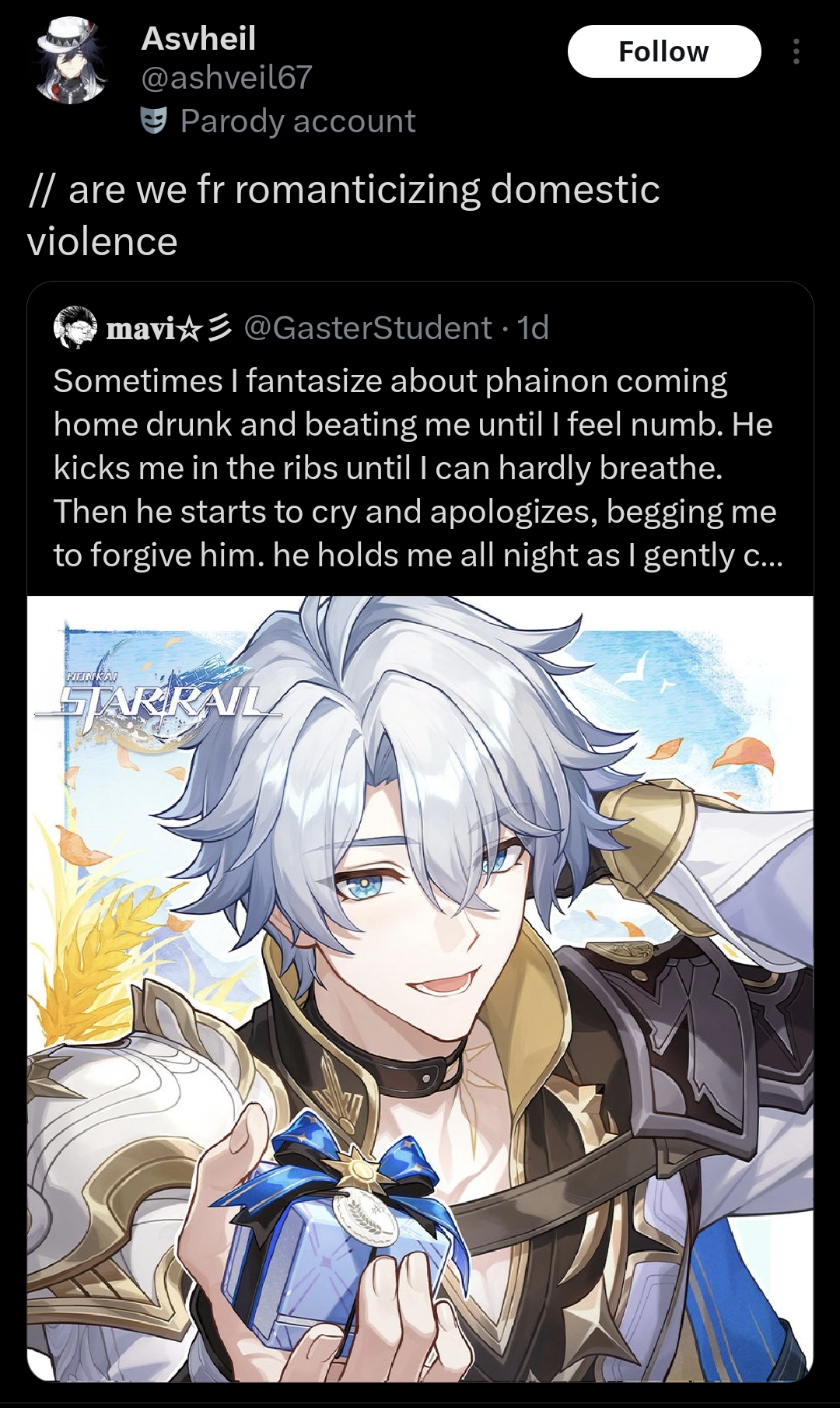 Mihoyo will see shit like this and still wonder why all their 3 games are now flopping when they decided to aim HSR at these same people.