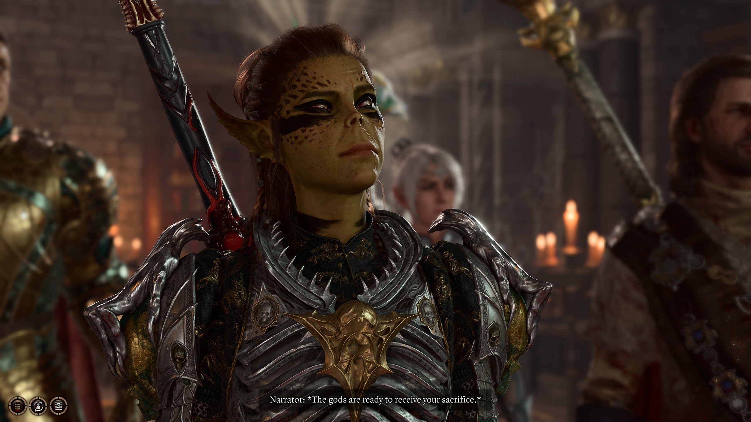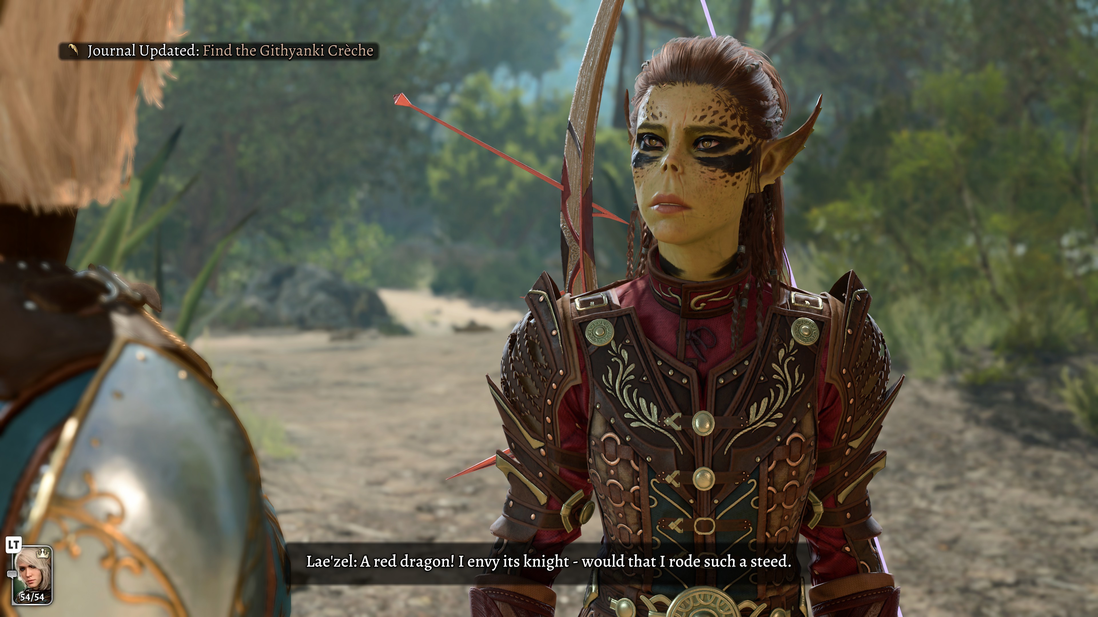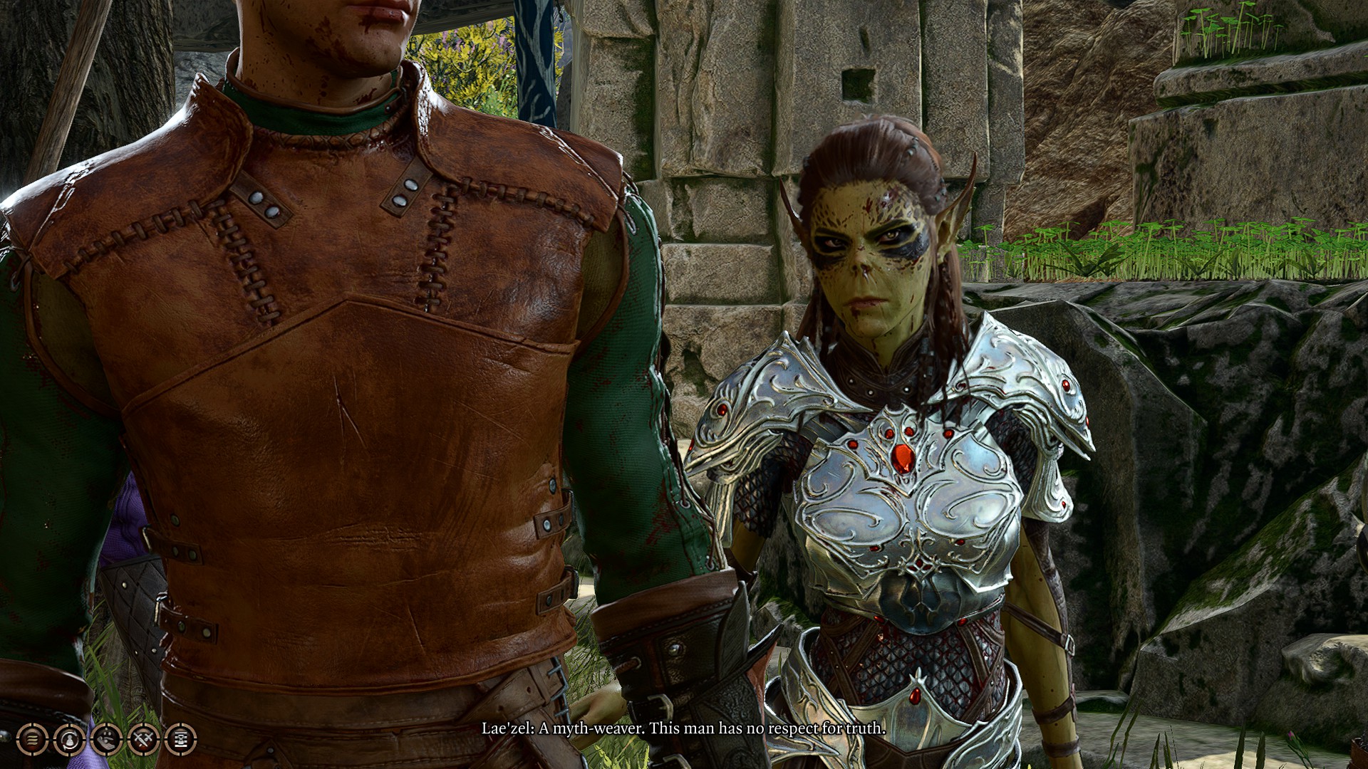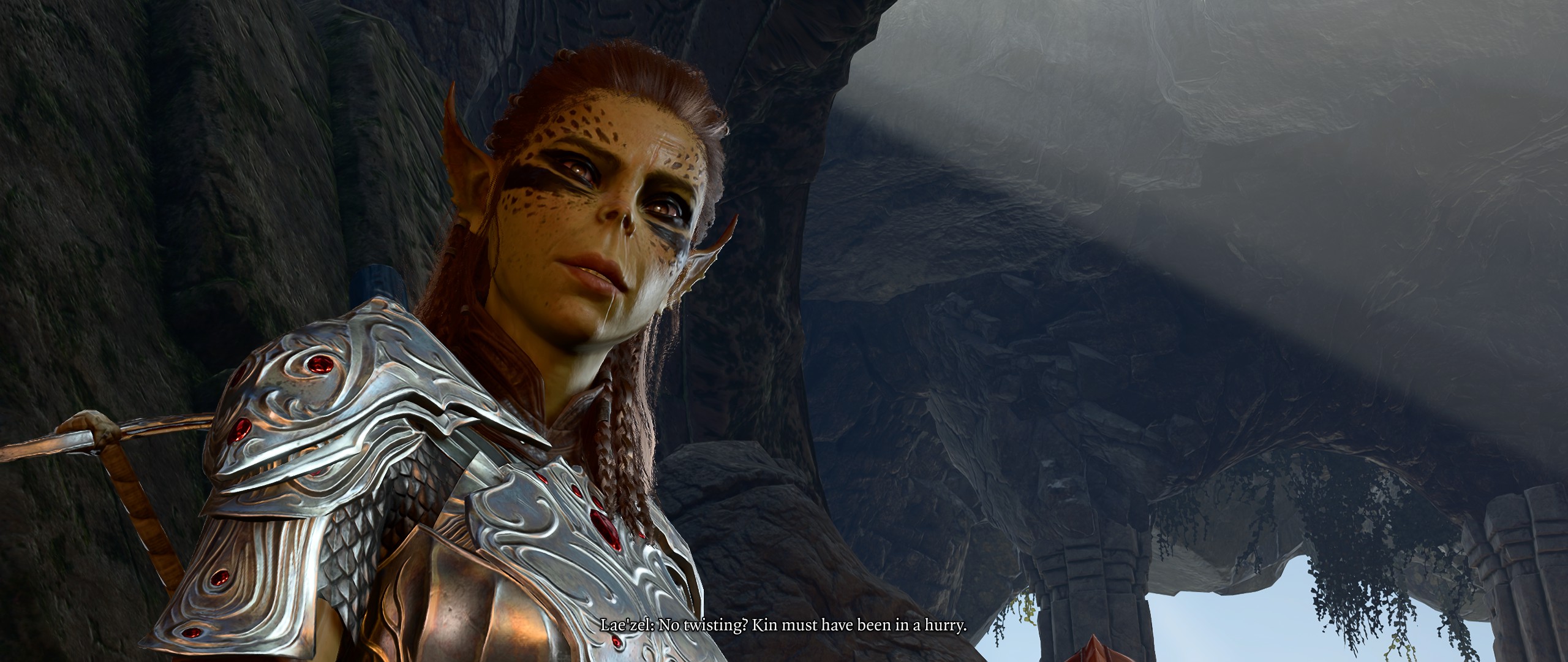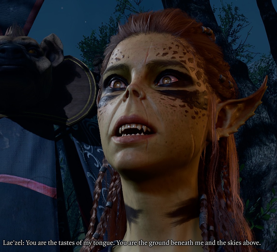 >hear the gruff grunts of Halsin somewhere behind become more primal, more animal