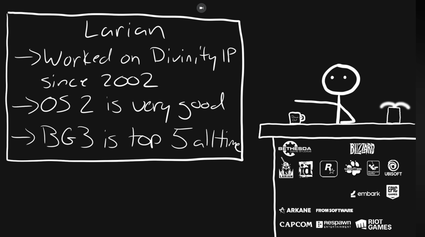 Larian's next game trailer: https://youtu.be/VxzyVeAG00w?si=ECYrhOXC82uBkG7s