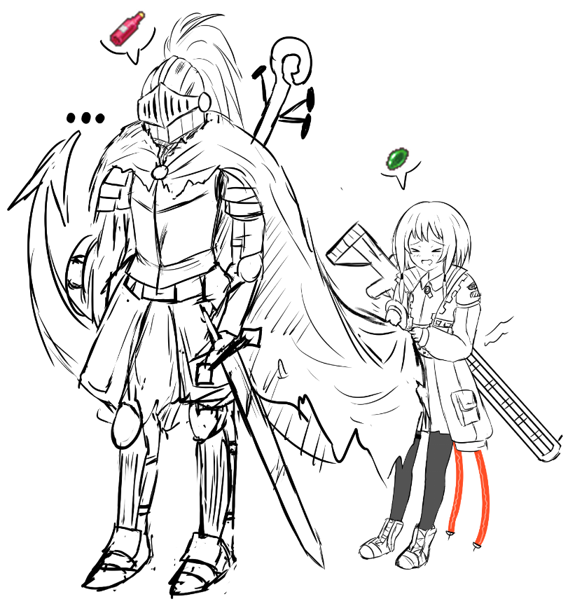 Requesting an Elden Ring version of this Demon's Souls drawing but with the roles reversed with it being an Elden Ring boss like Malenia being sandwiched between the Tarnished and his mimic tear summon.