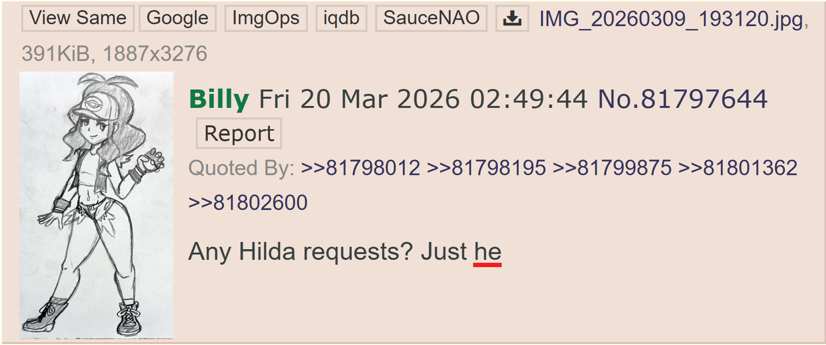 >>561884625Hey HMOFAperson, I have a genuine request for you. Please draw this for me will ya? This isn't meant to be mean or anything but I see you haven't drawn anything in three years so I'd like to see you draw this.